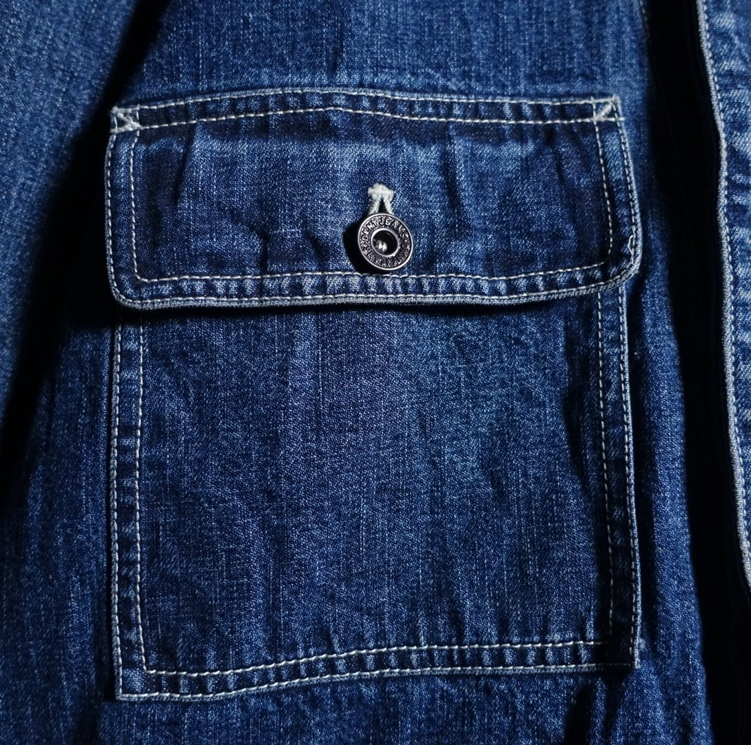 ボタンがブランドの刻印が入った燻んだシルバーボタンとなっており、より一層このアイテムの雰囲気を高めてくれています。