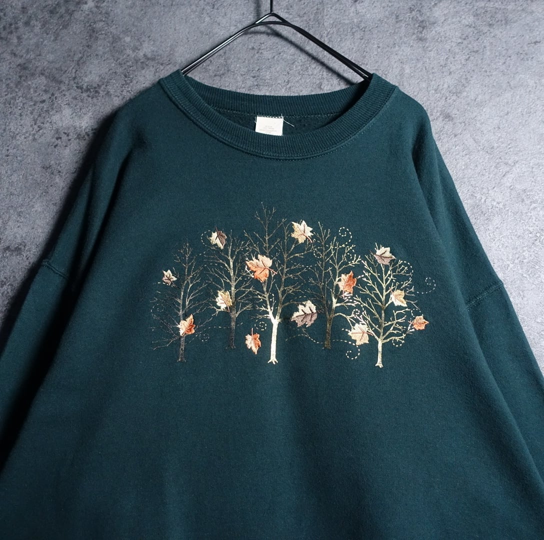 グリーンの紅葉プリント&刺繍デザインスウェットが入荷です。