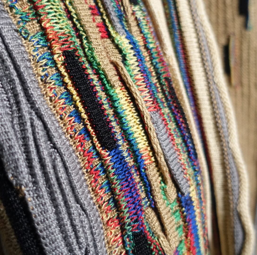 様々な種類の立体的な3Dのうねりのあるニッティングを全面にあしらったスペシャルなデザイン。