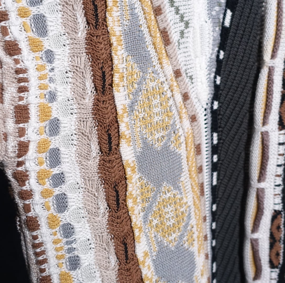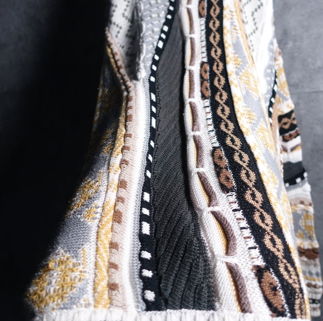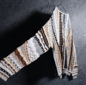 様々な種類の立体的な3Dのうねりのあるニッティングと幾何学模様を全面にあしらったスペシャルなデザイン。