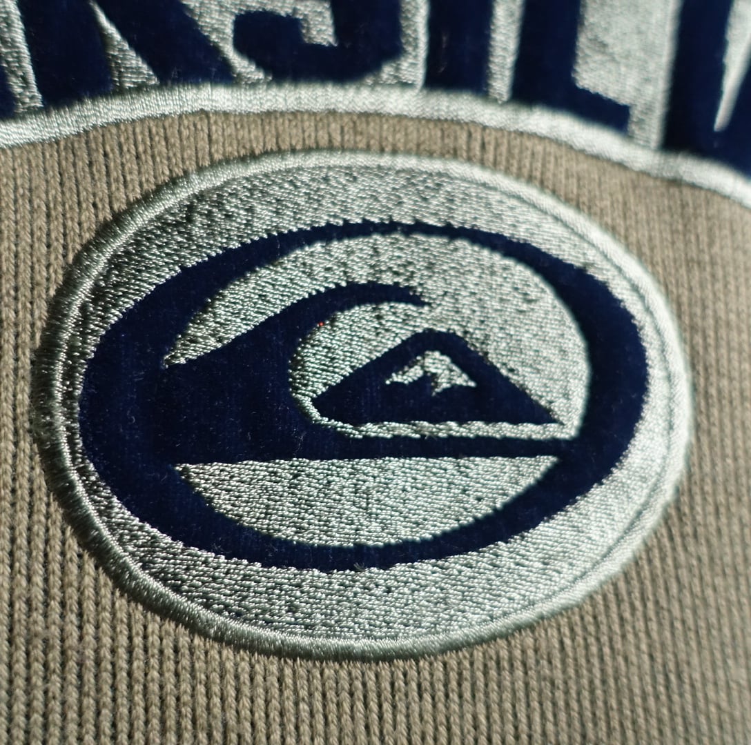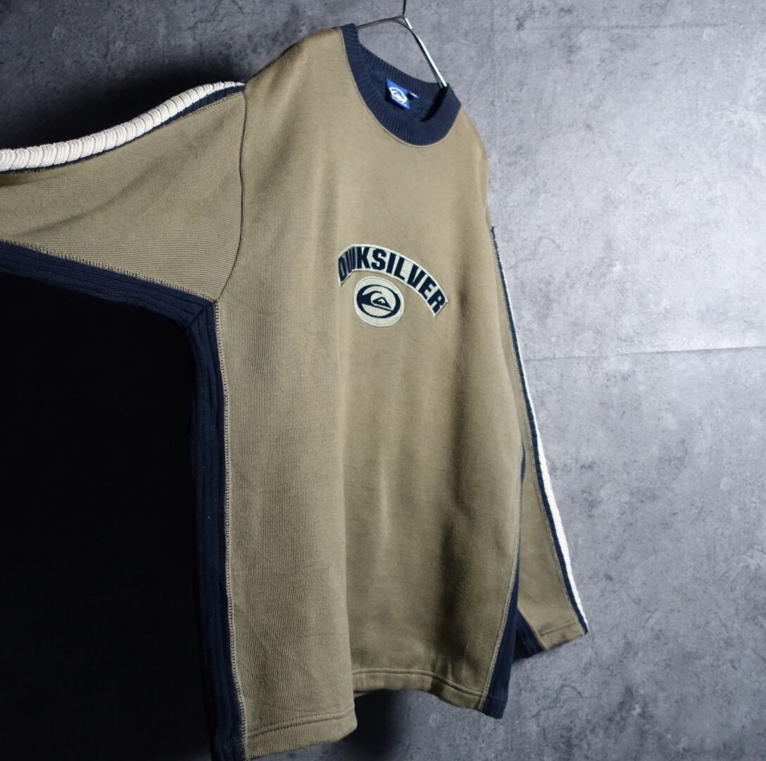 90年代頃のQUIKSILVERよりロゴ刺繍&ニット切替デザインスウェットが入荷です。