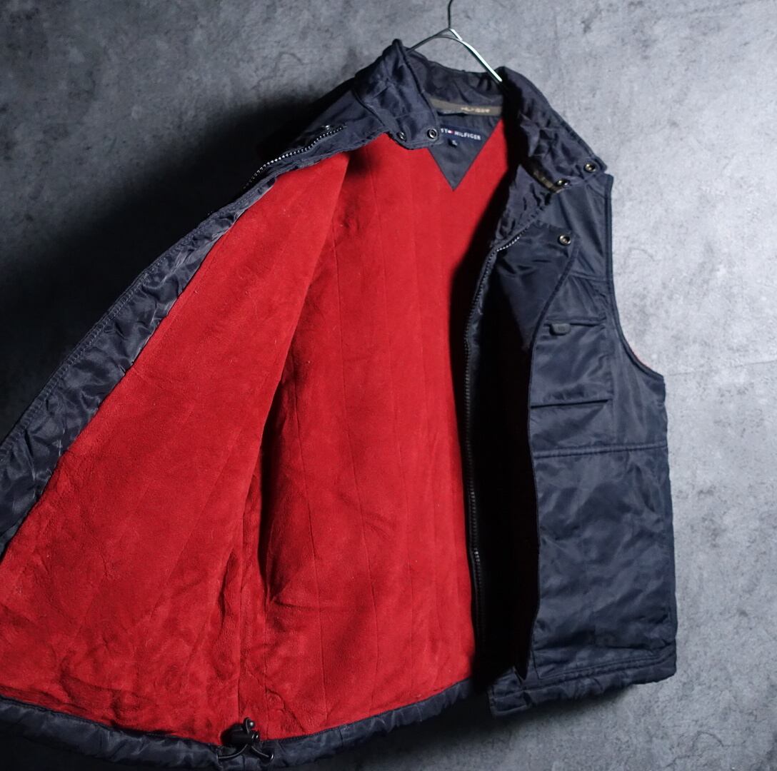 00s “TOMMY HILFIGER” Navy Logo Design 4 Pocket Nylon Fleece Vest