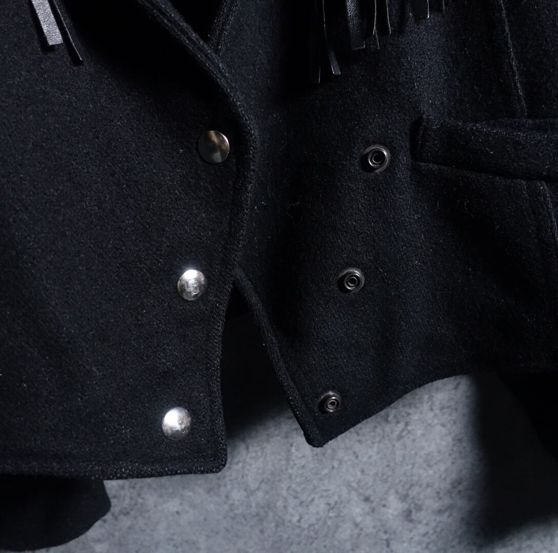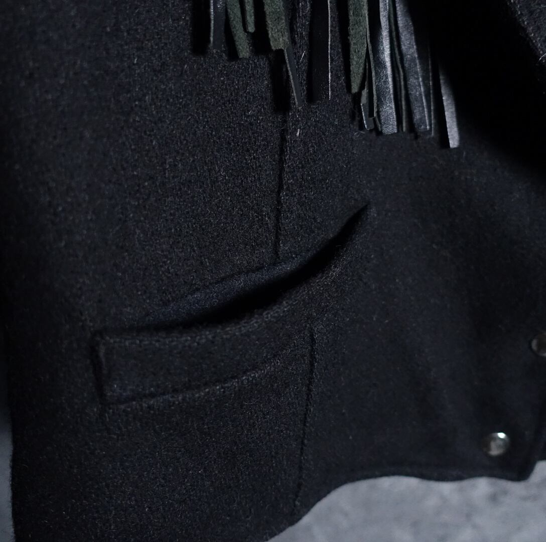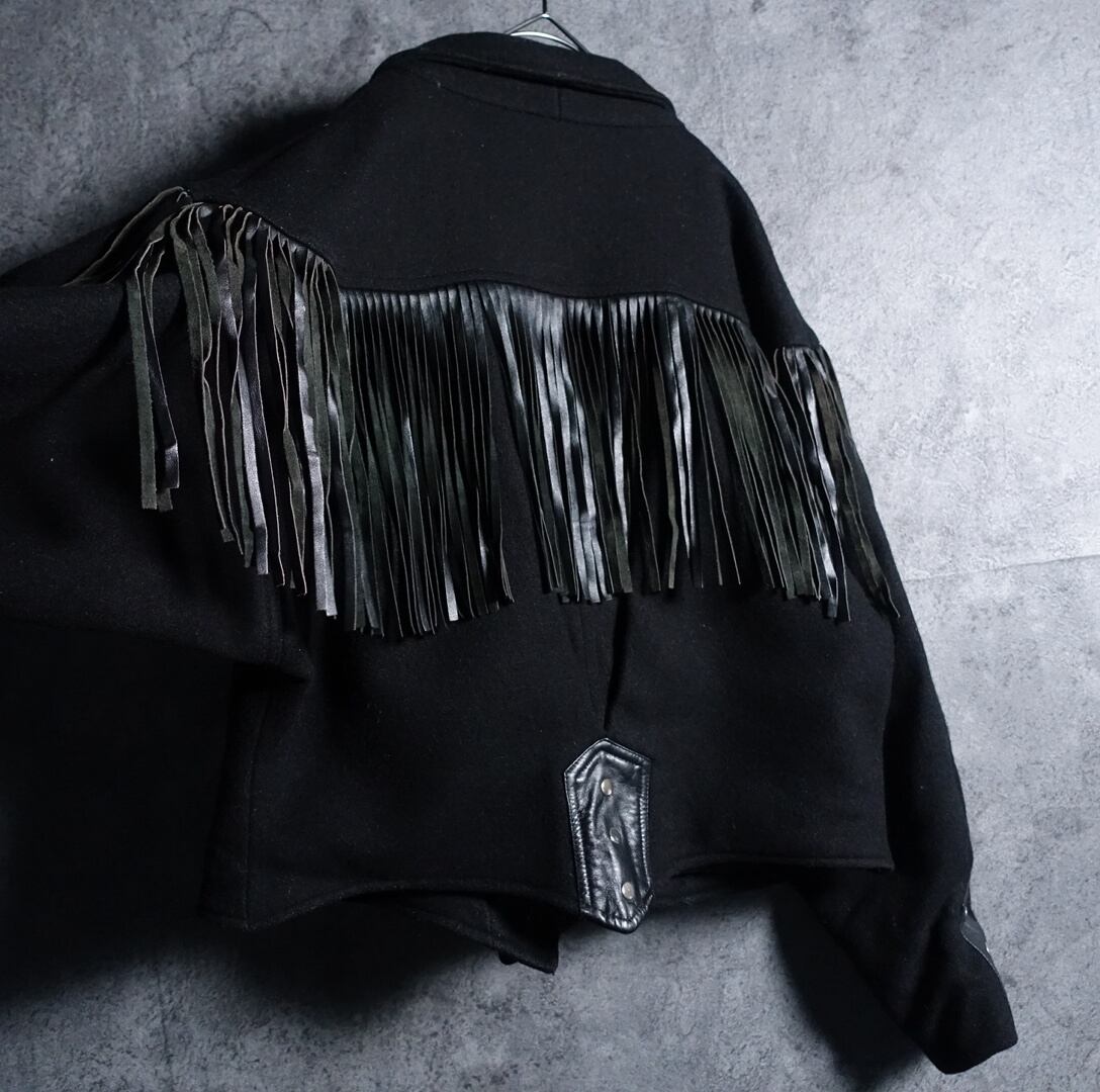 70s Black Leather Fringe Desgin Wool Short Jacket