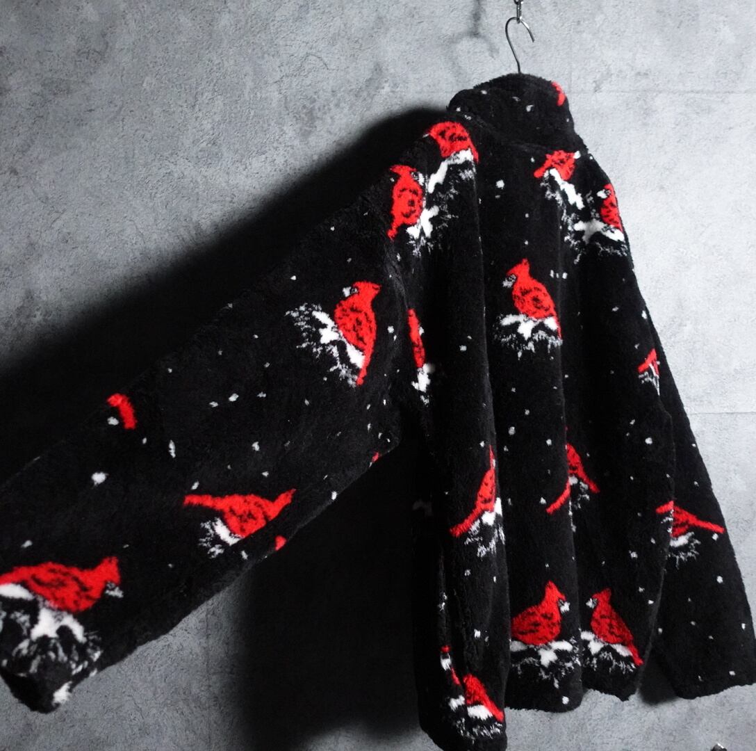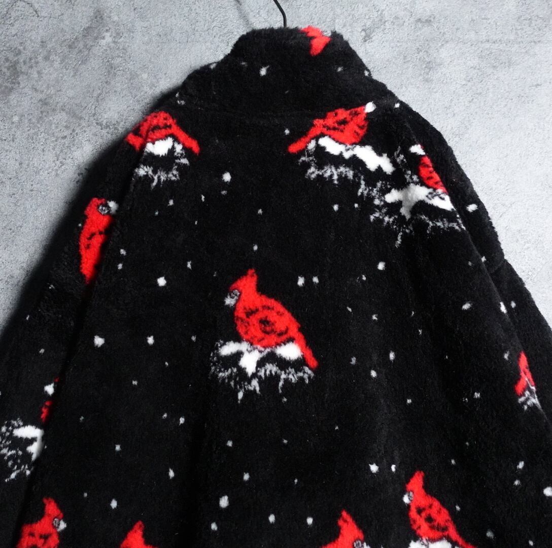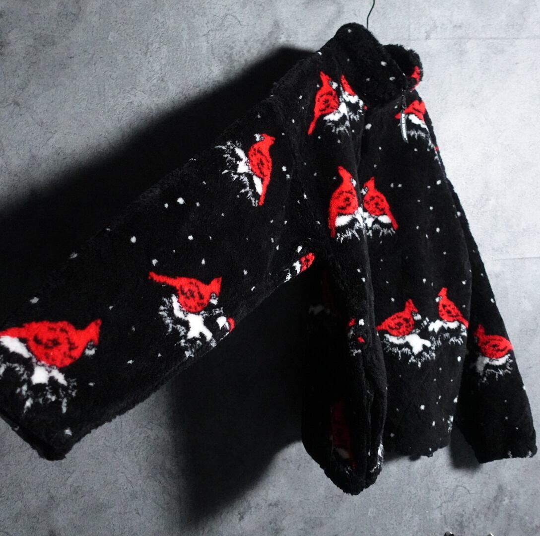 90s “BLACK MOUNTAIN” Black bird manimal fleece jacket