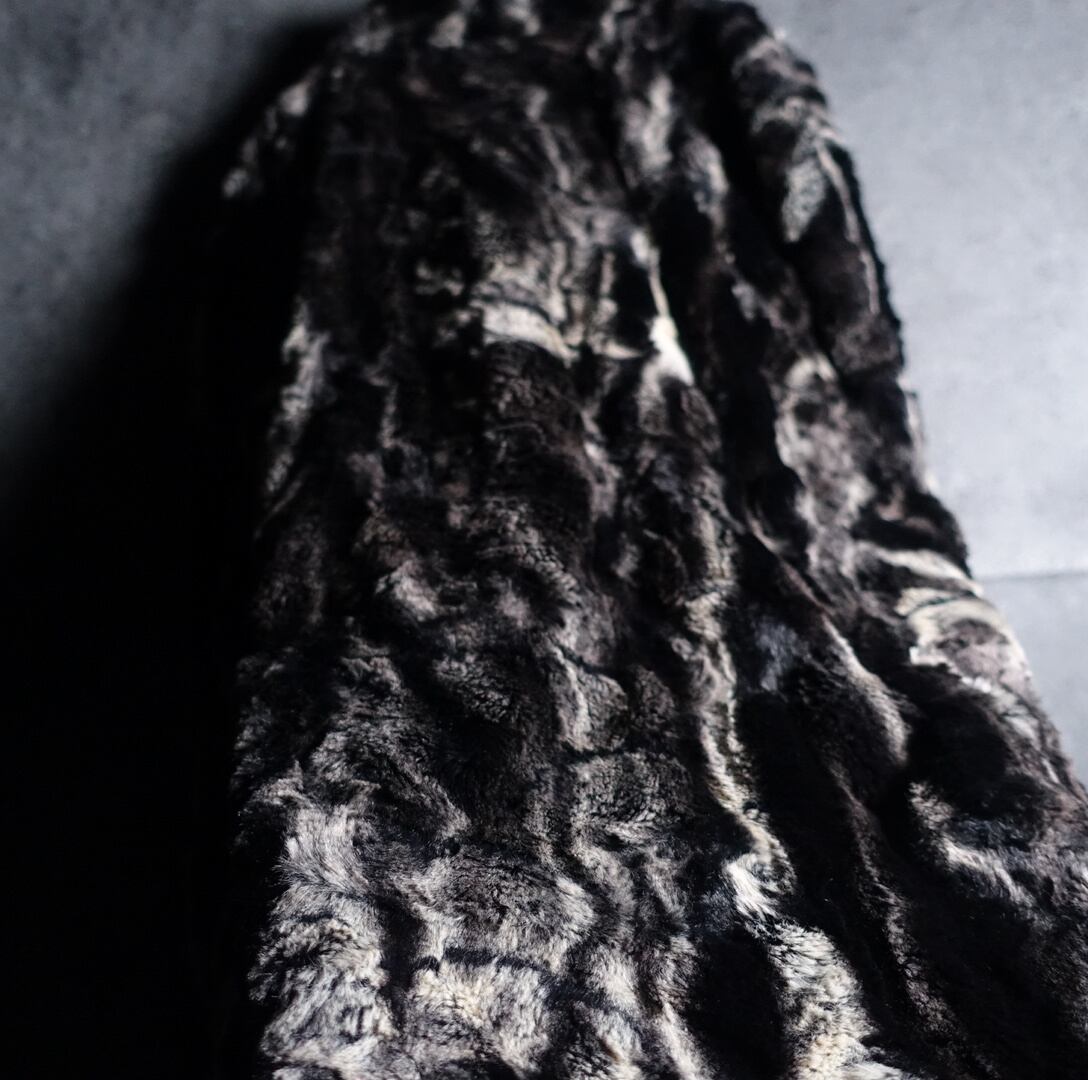 毛足の長いフェイクファーにそれぞれのカラーをグラデーションのようにあしらったラグジュアリーな雰囲気のあるデザイン。