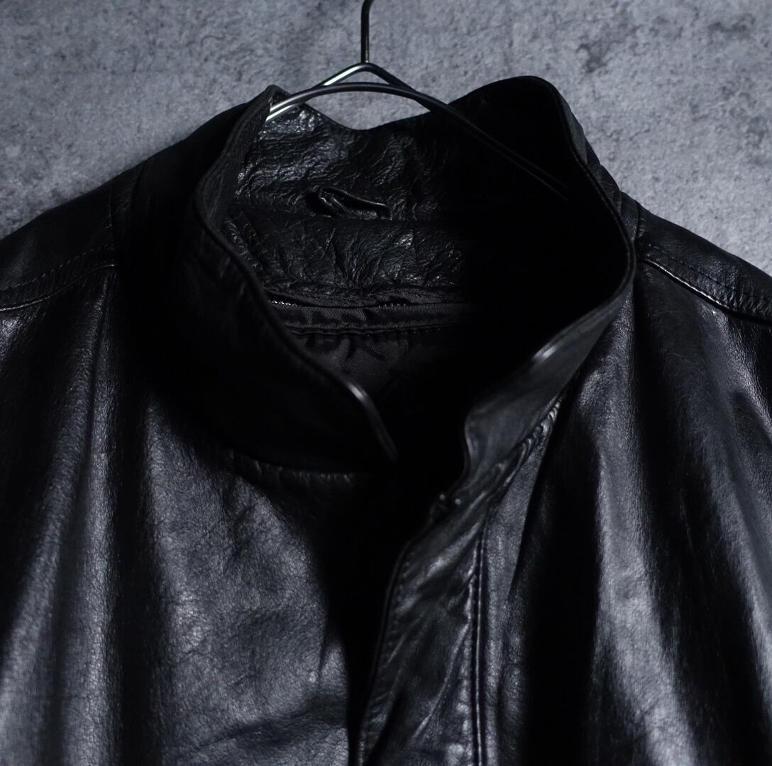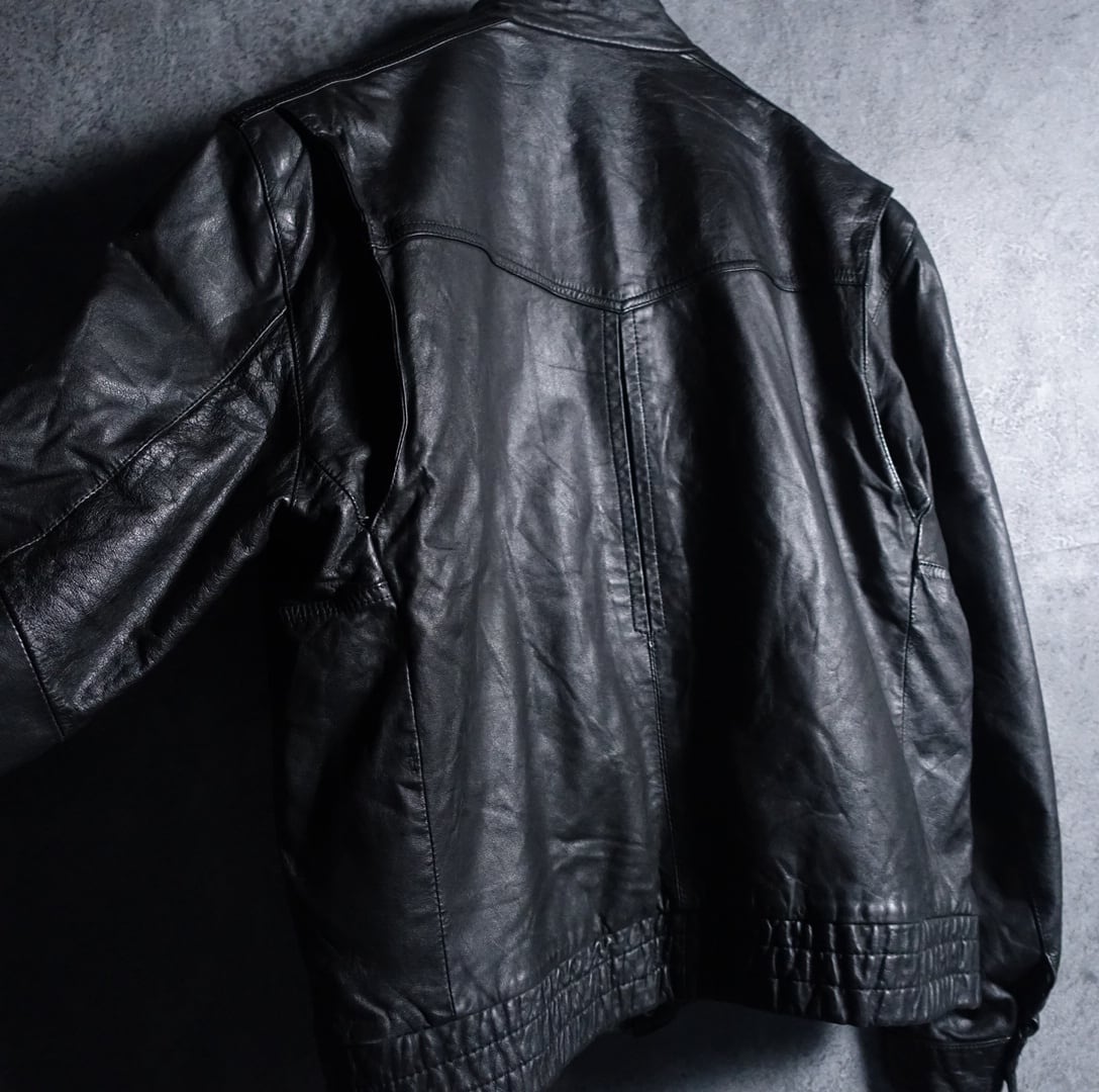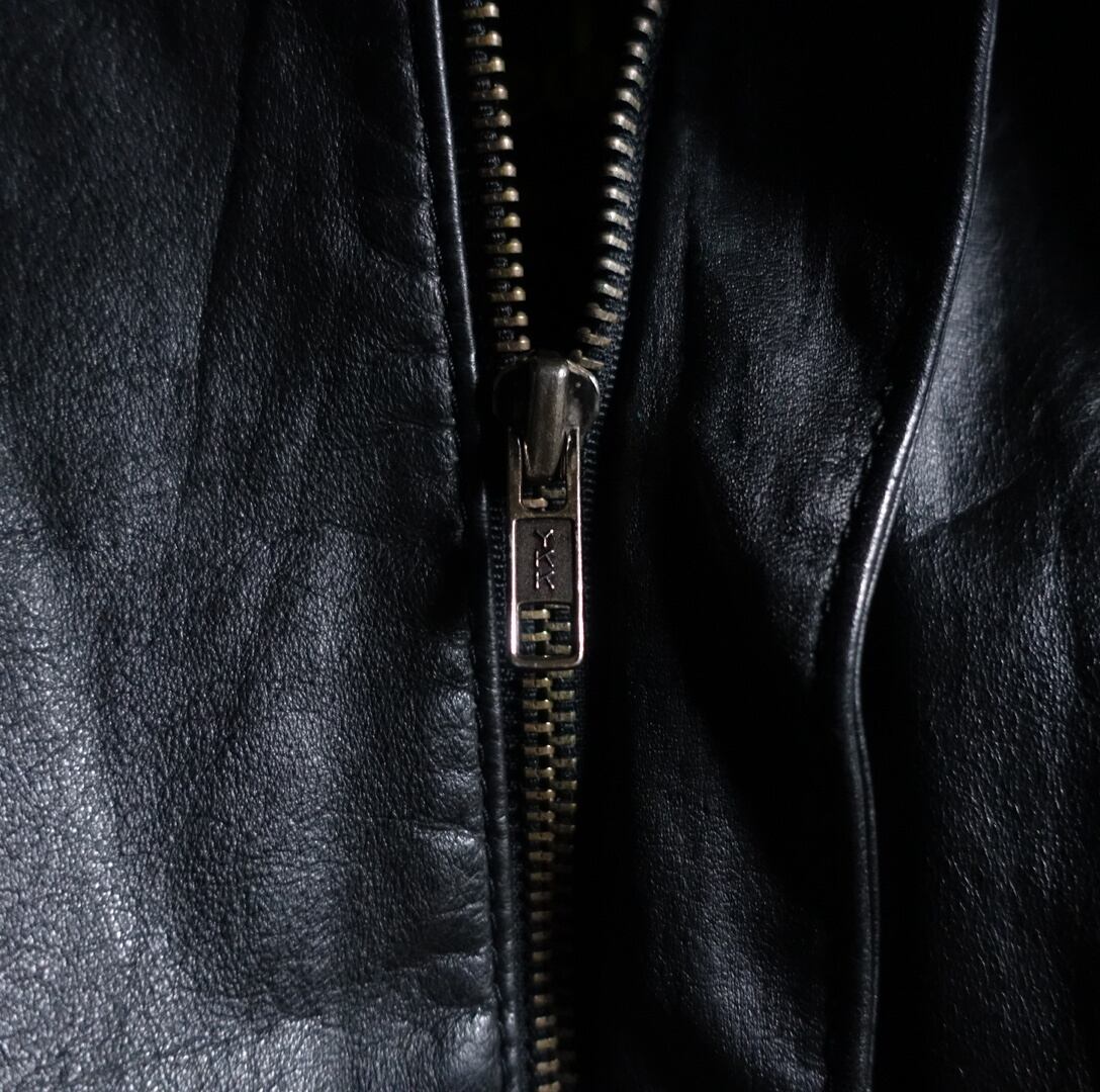 90s “Reed” Black Real Leather Zip Short Blouson
