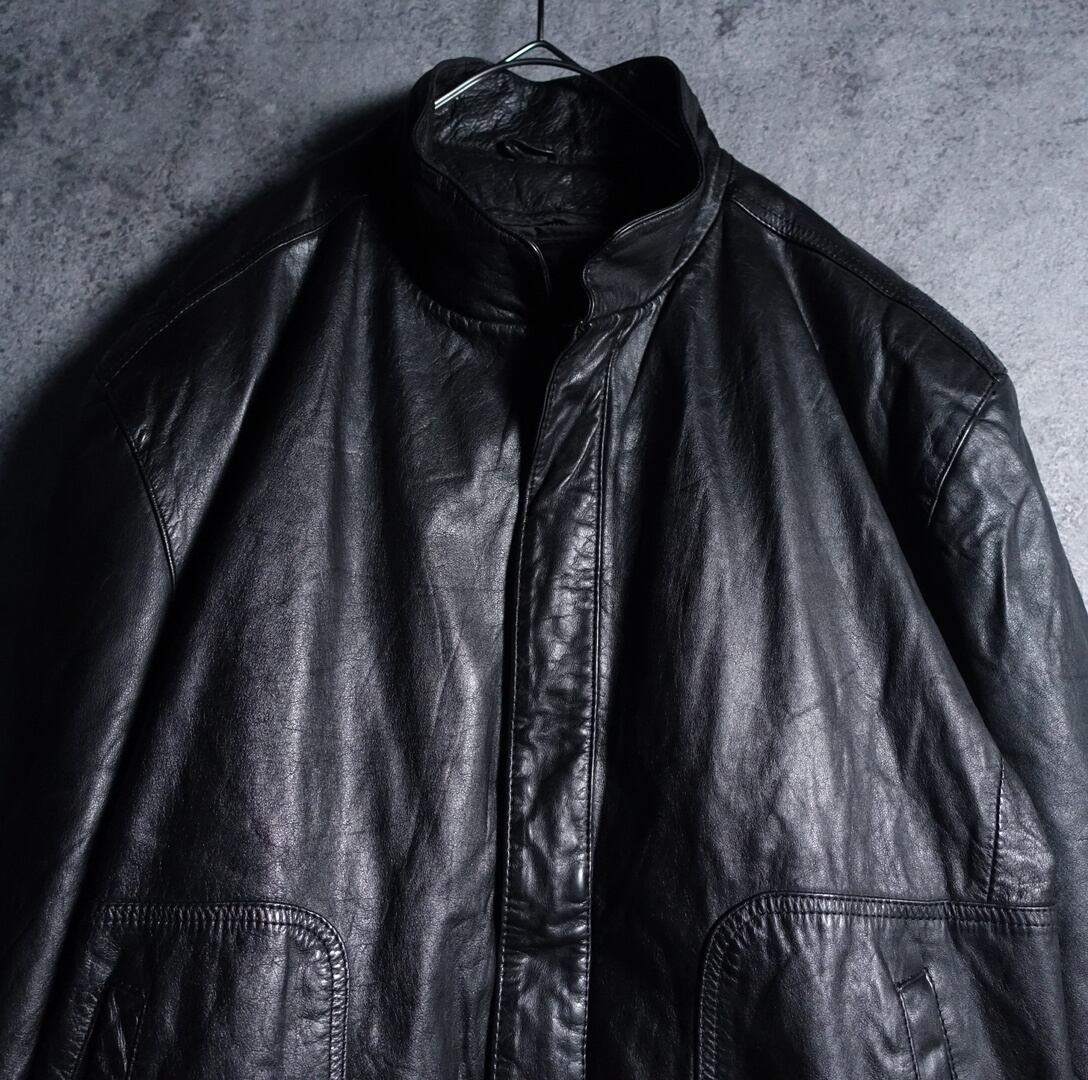 90s “Reed” Black Real Leather Zip Blouson