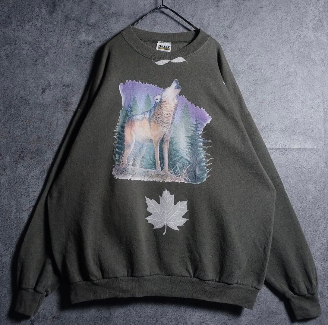 90年代のアメリカ製のTULTEXよりスペシャルなウルフ&落ち葉プリントスウェットが入荷です。