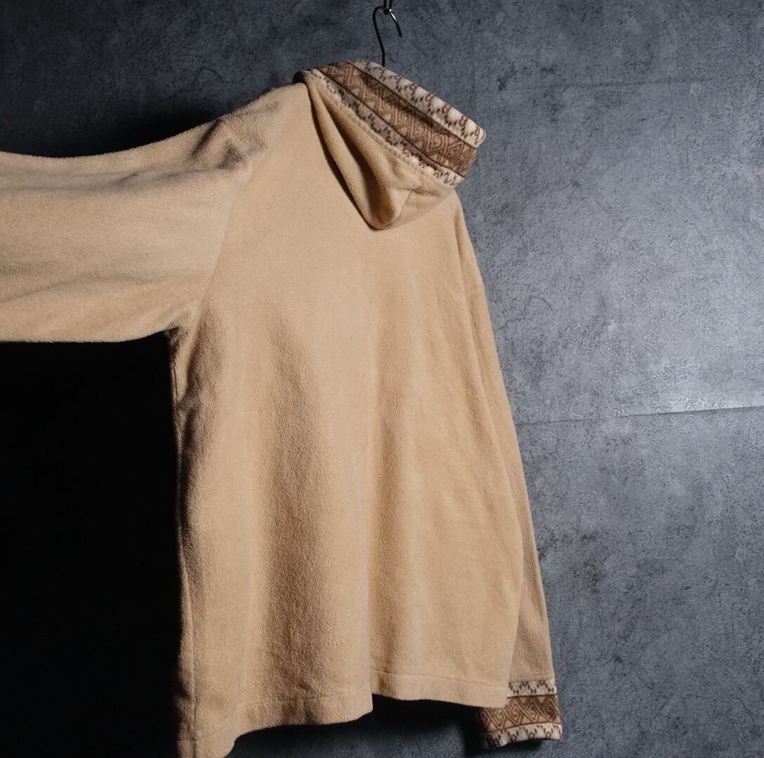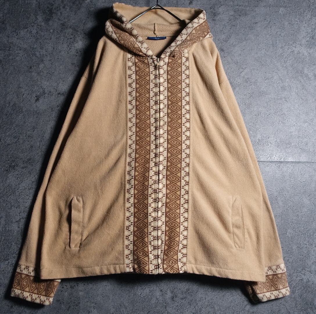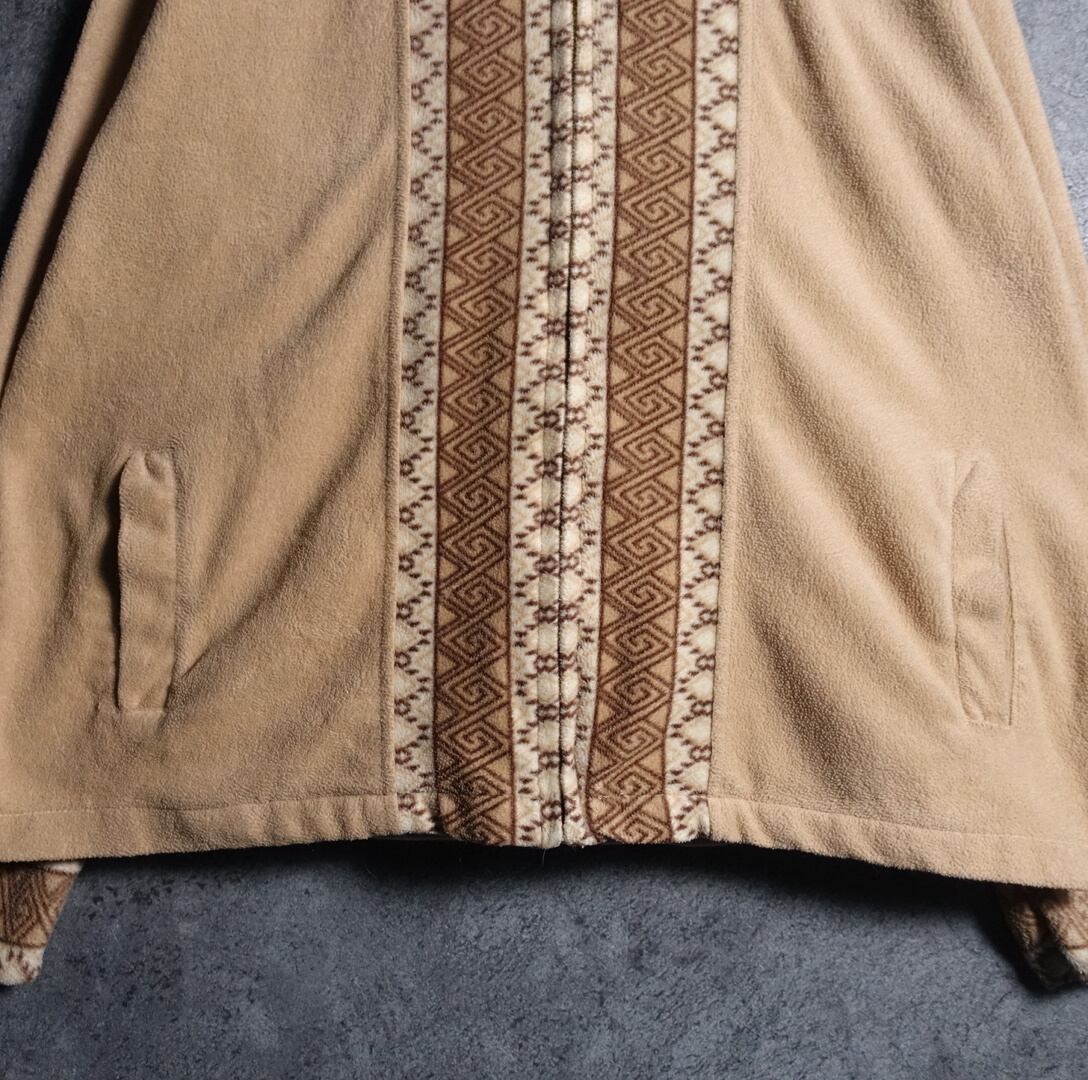 ベージュ&ブラウンの幾何学模様デザインフリースジップパーカーが入荷です。