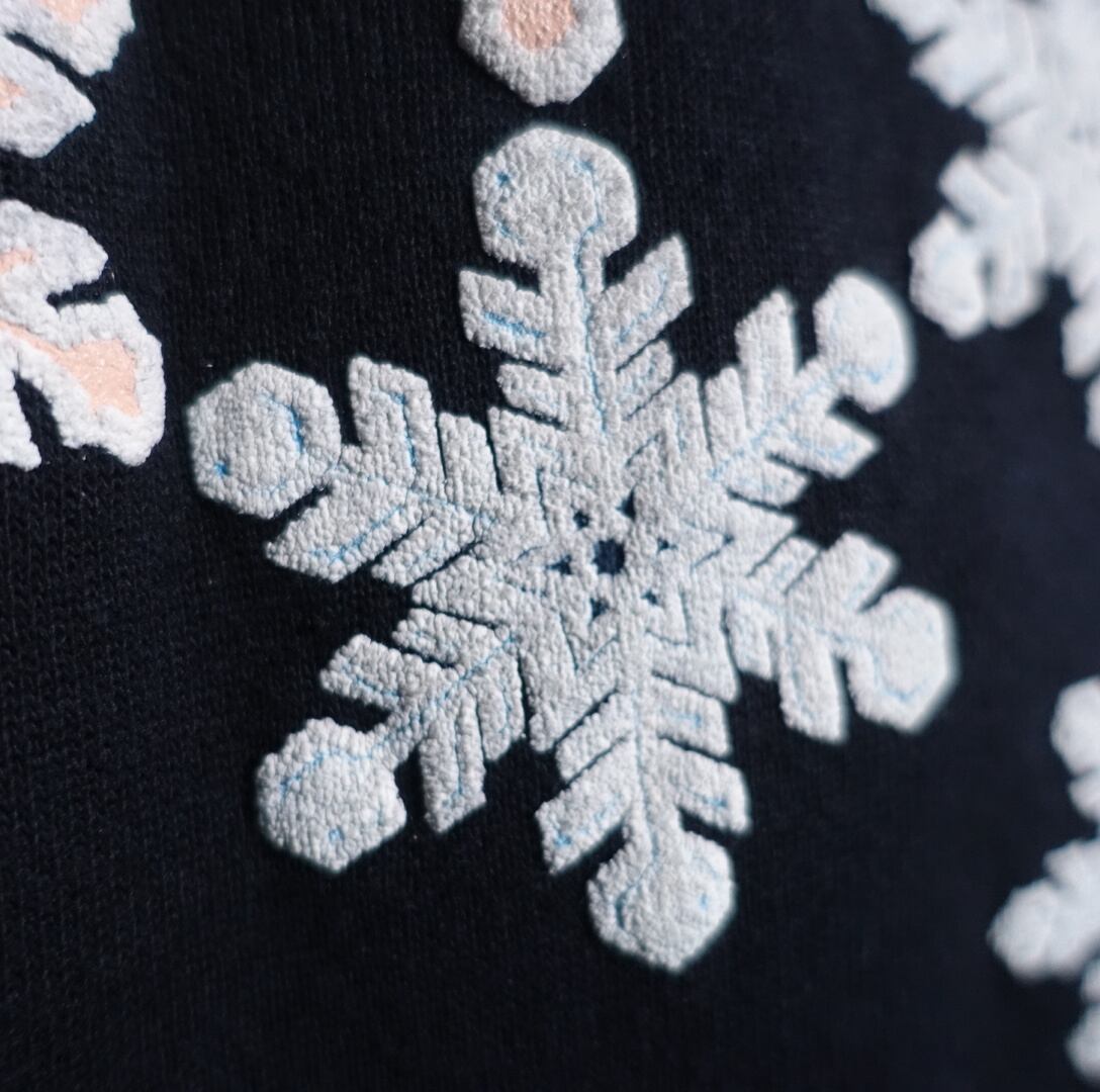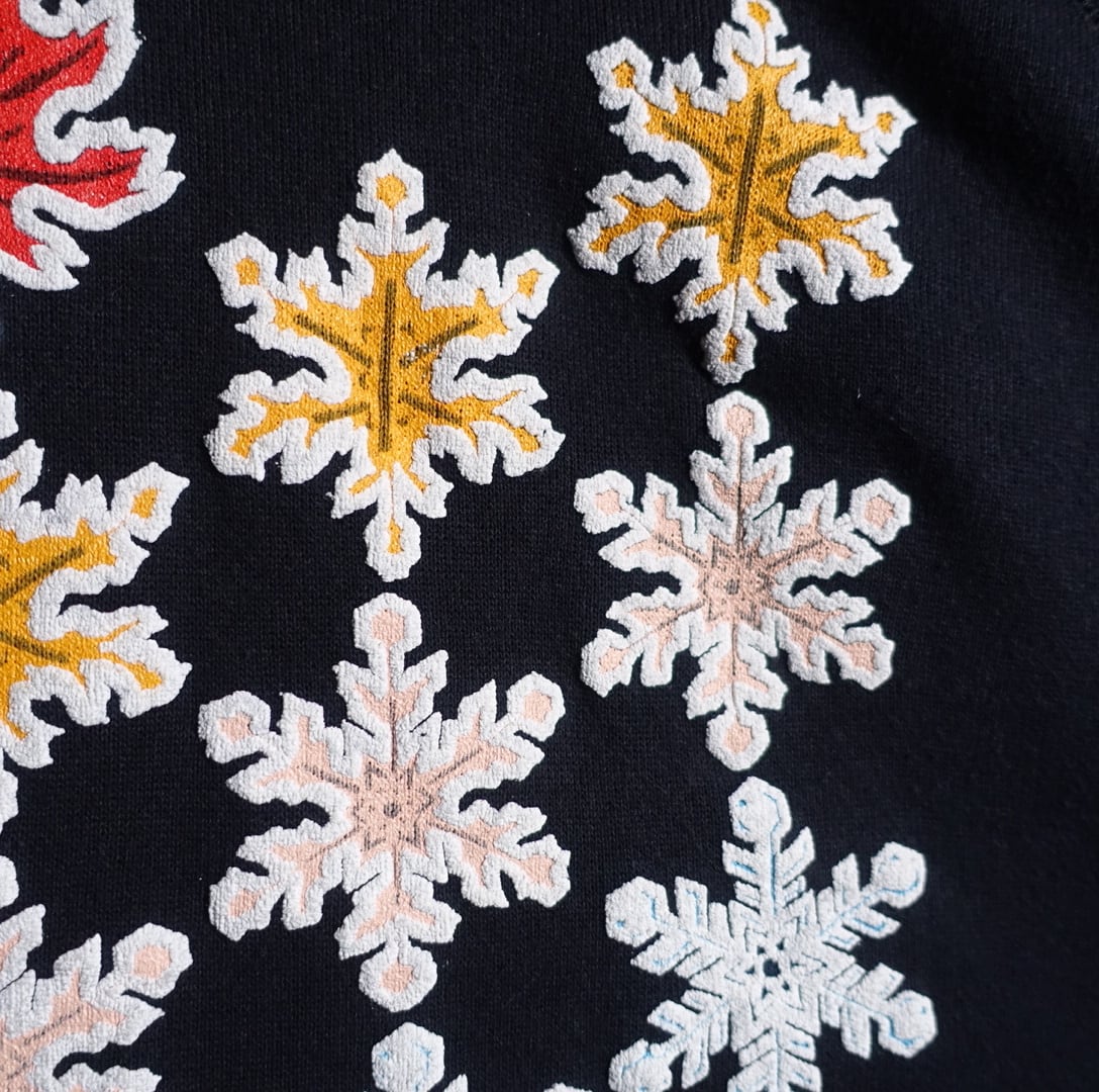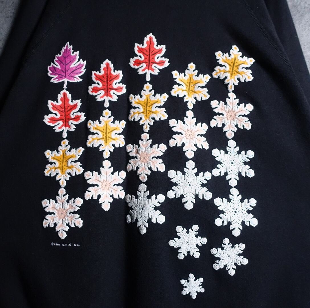 90年代アメリカ製の紅葉&雪結晶プリントデザインスウェットが入荷です。