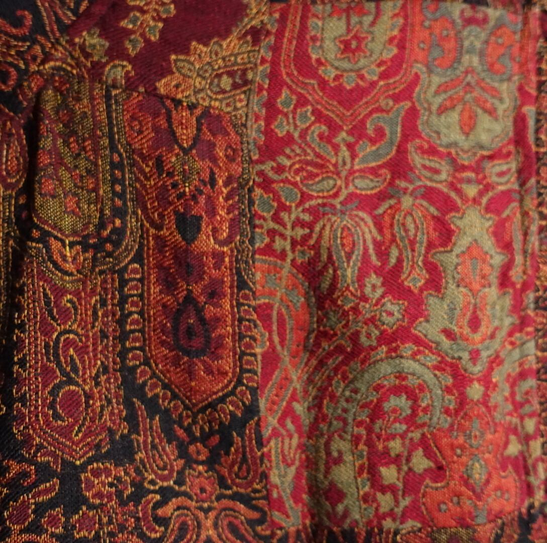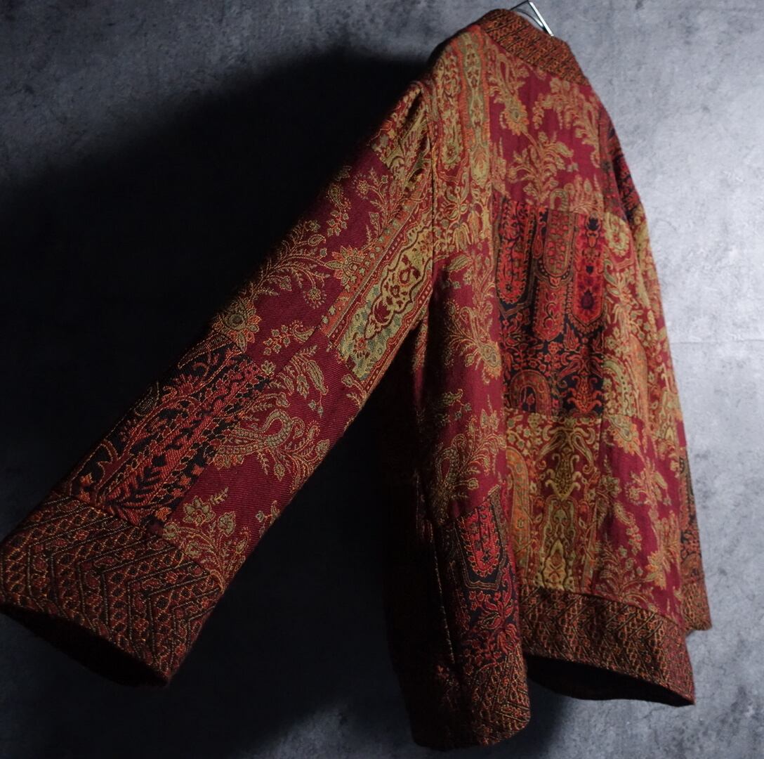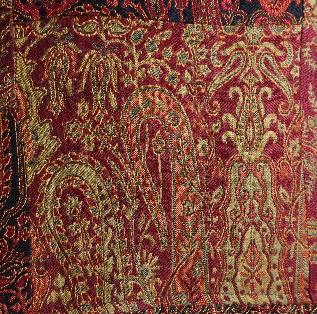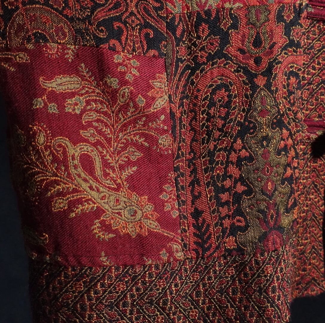 ペイズリー、オリエンタル、ボタニカルをプリントではなく織りで表現し、パッチワーク状に縫い合わせて構築された凝りに凝ったスペシャルなデザイン。