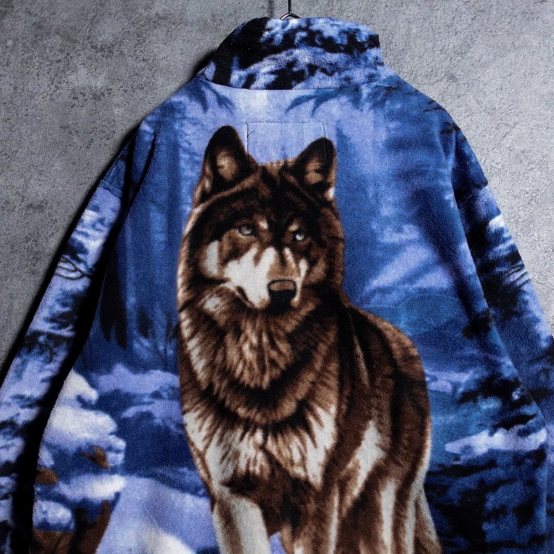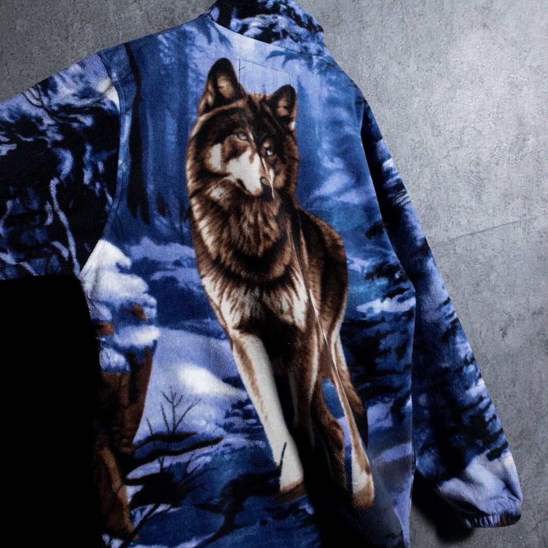 90s “TRAIL CREST” Wolf Pattern Double Sided Animal Fleece Jacket
