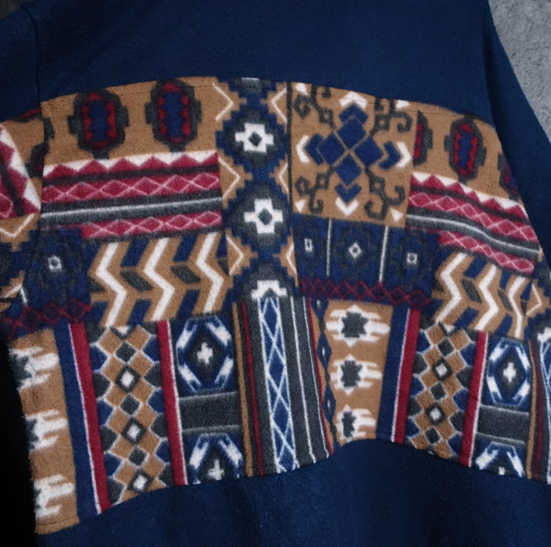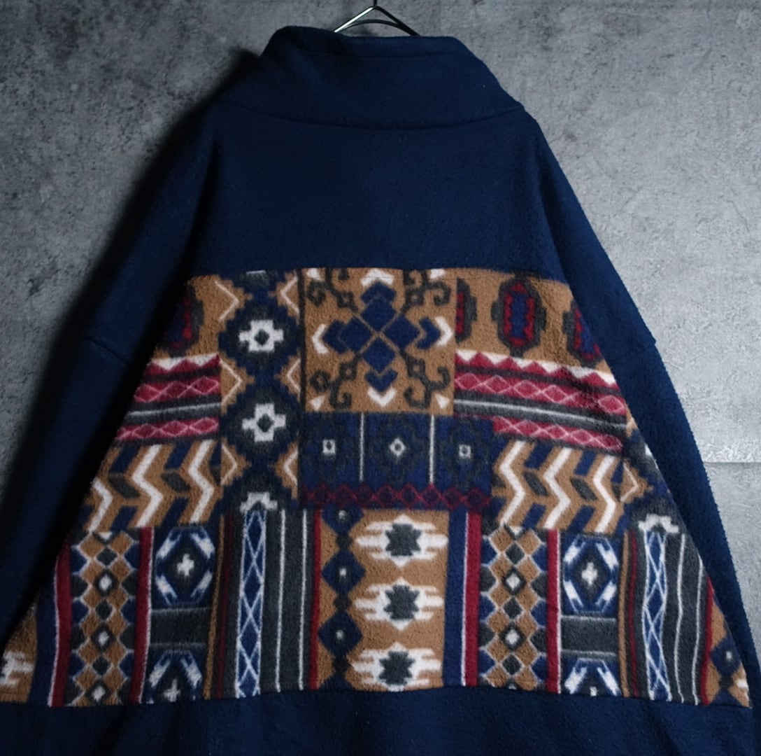 ユーロの幾何学模様切替デザインハーフジップフリースジャケットが入荷です。