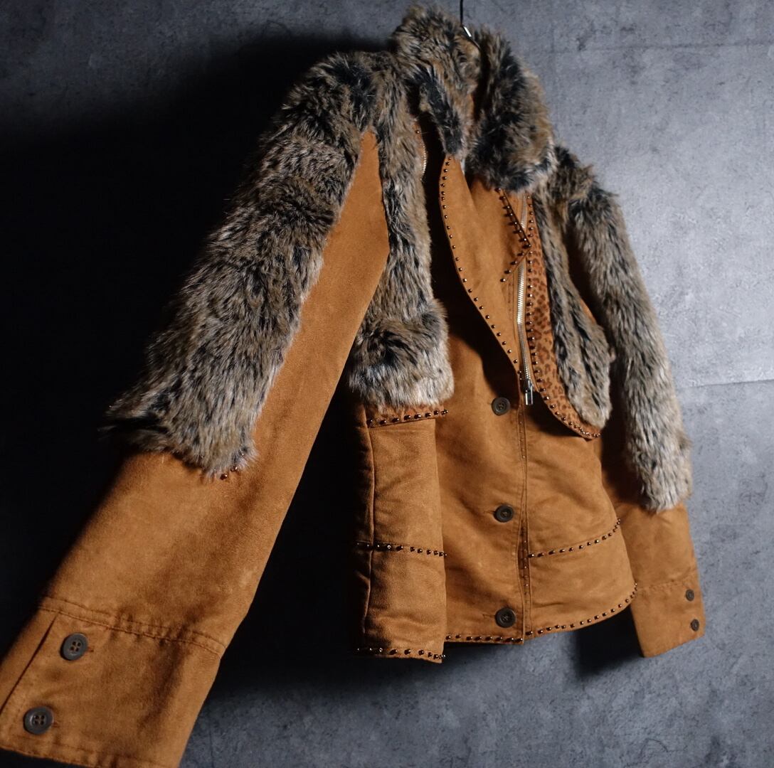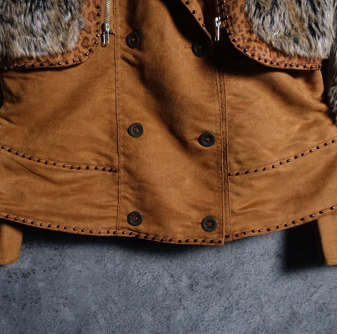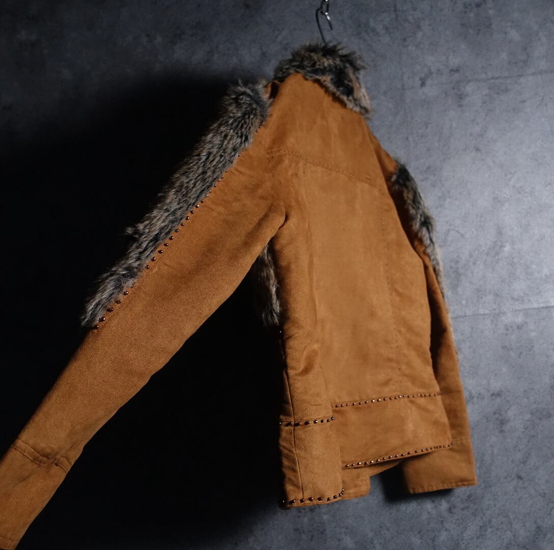 “KEREN hart” Brown Fur & Studs Design Short Jacket