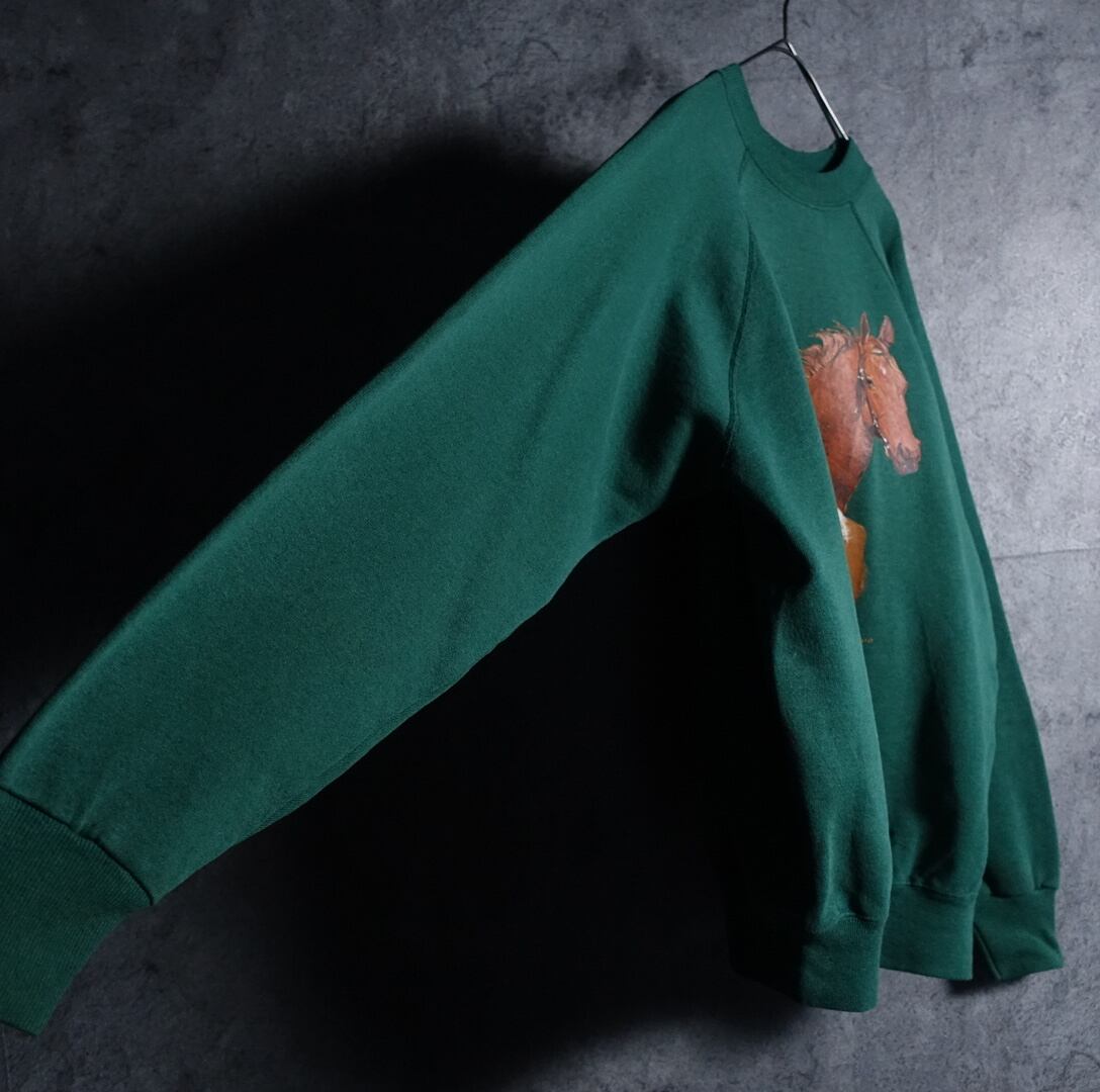 90年代アメリカ製のHanesよりグリーンの馬モチーフプリントデザインスウェットが入荷です。