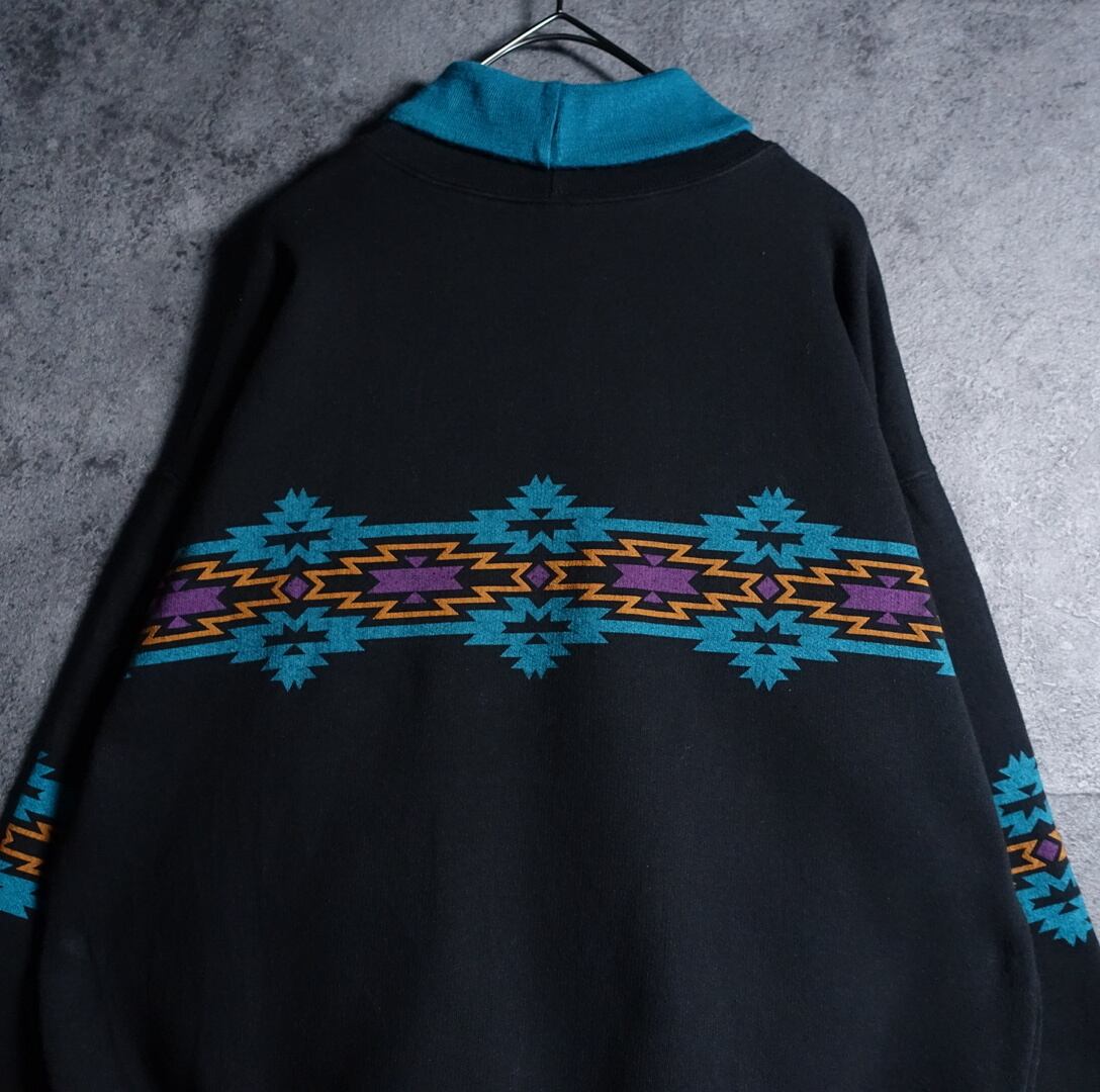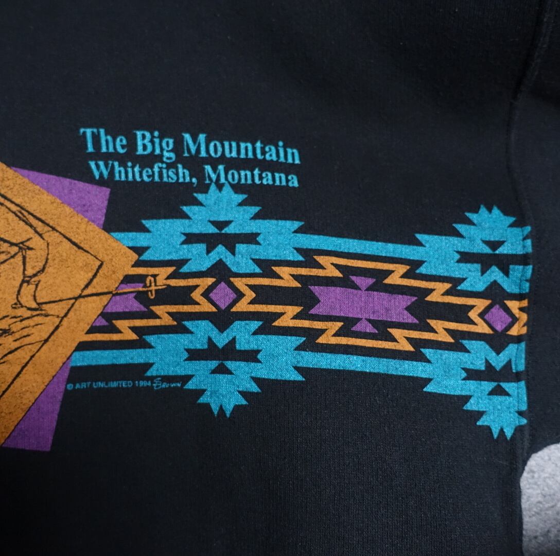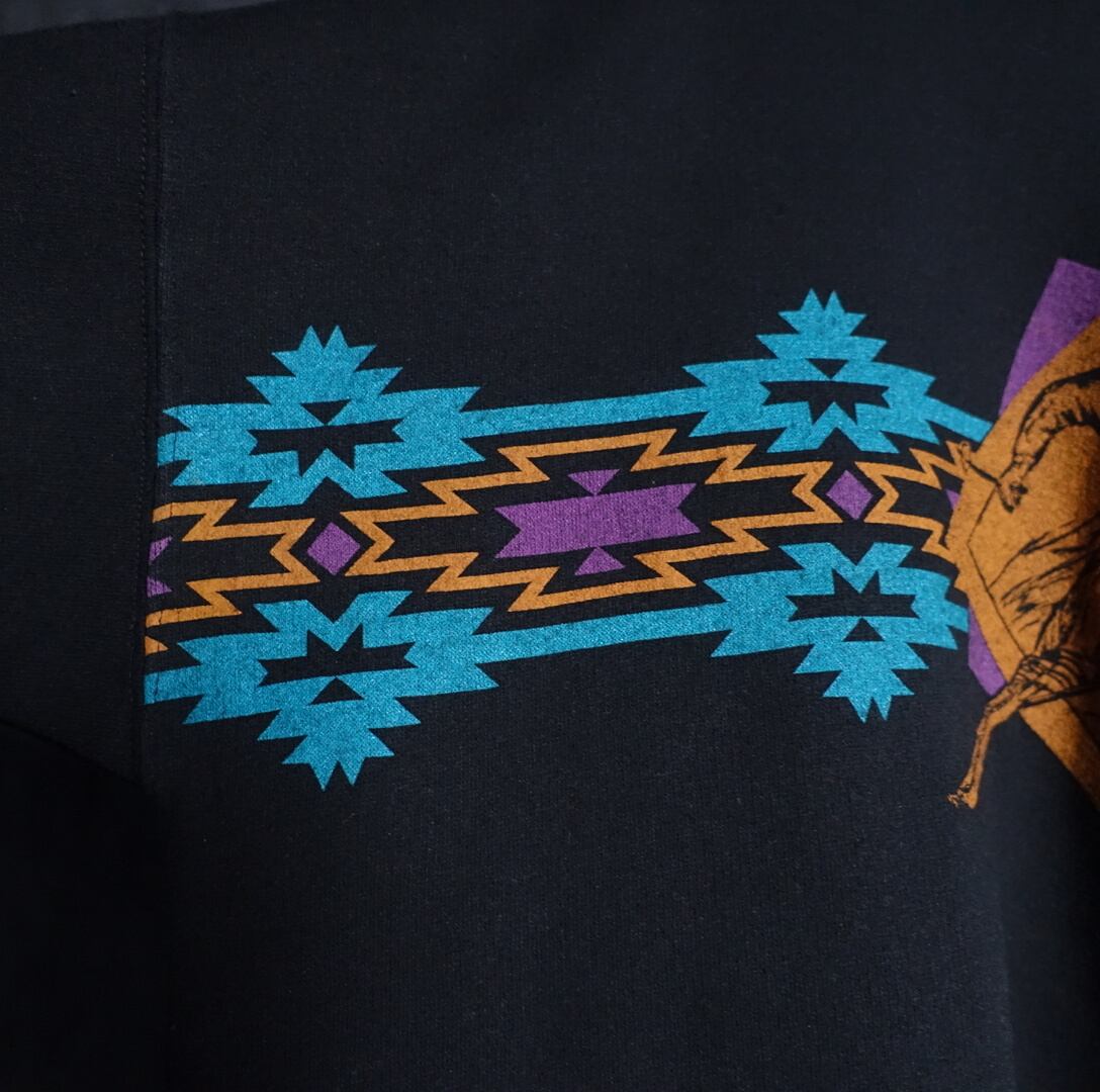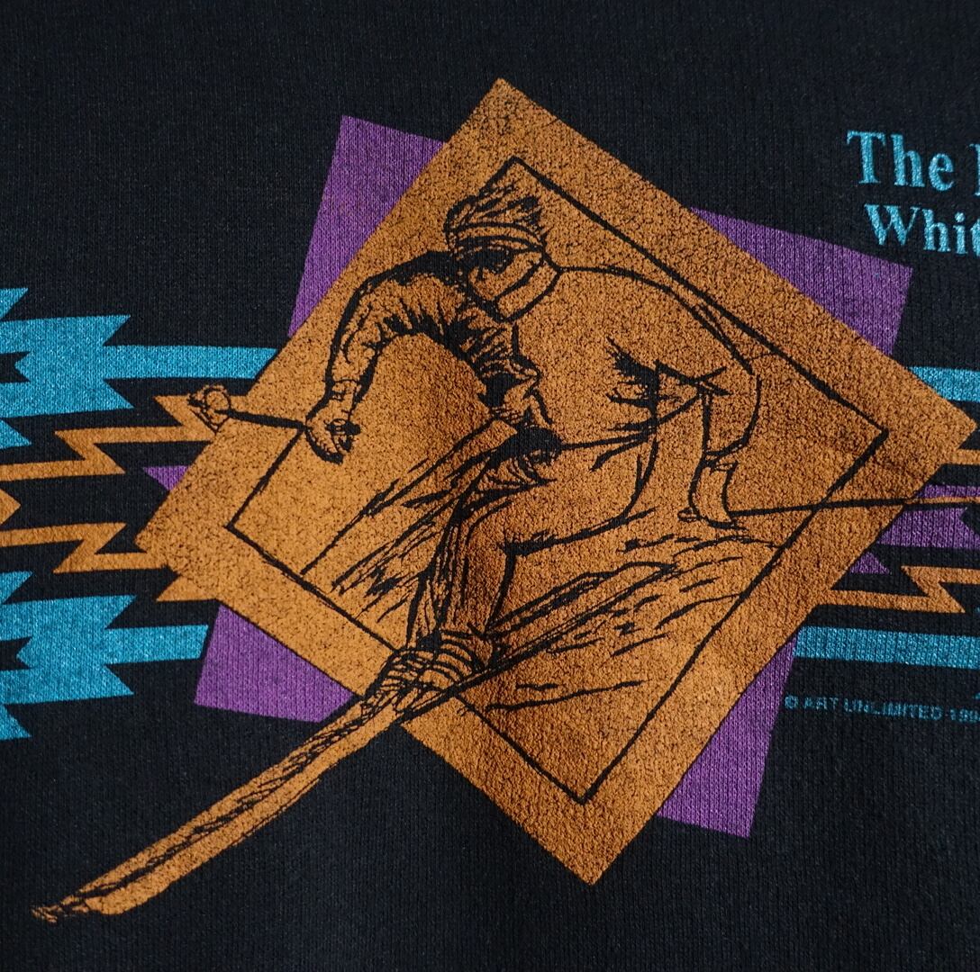 90sのART UNRIMITEDよりスペシャルなブラックのスキーヤー&幾何学模様デザインスウェットが入荷です。