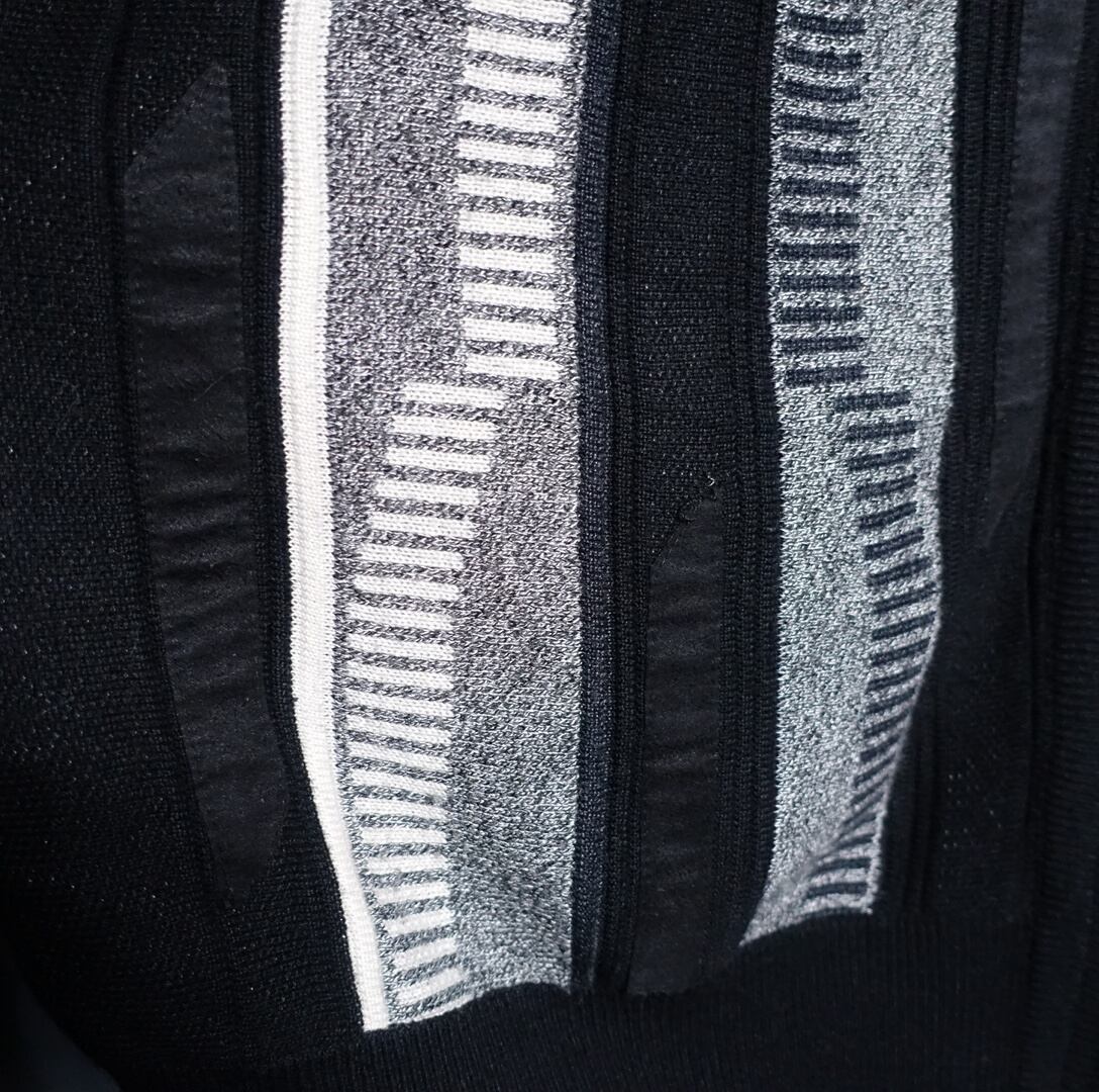 フロントに立体感のあるニッティングや幾何学模様、ピーチスキン生地などを施したスペシャルなデザイン。