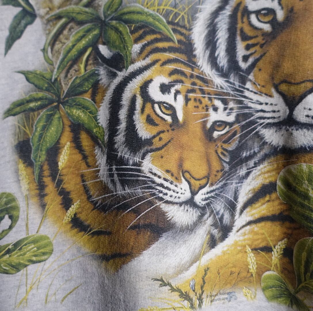 “JERZEES” Gray Tiger Motif Print Design Sweat