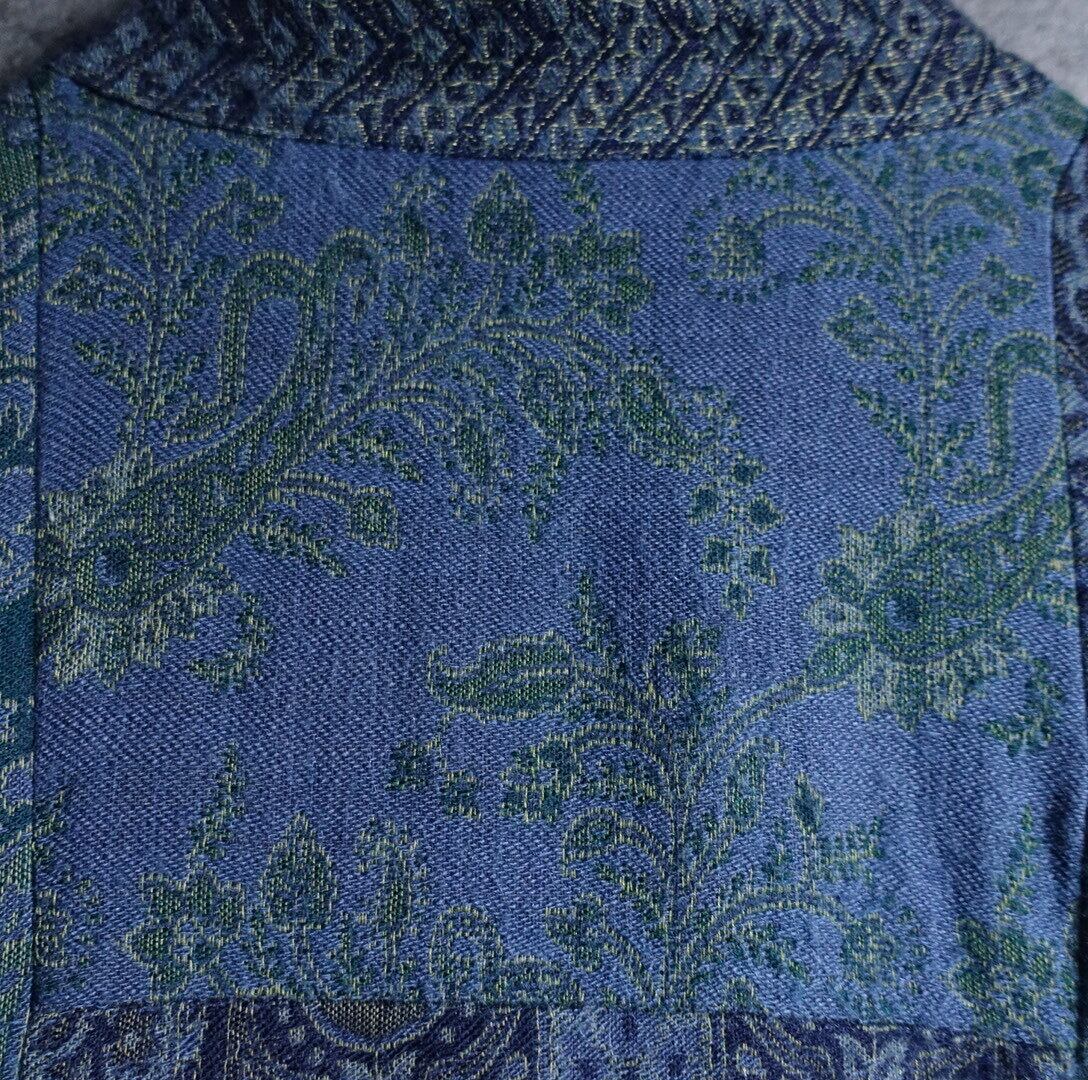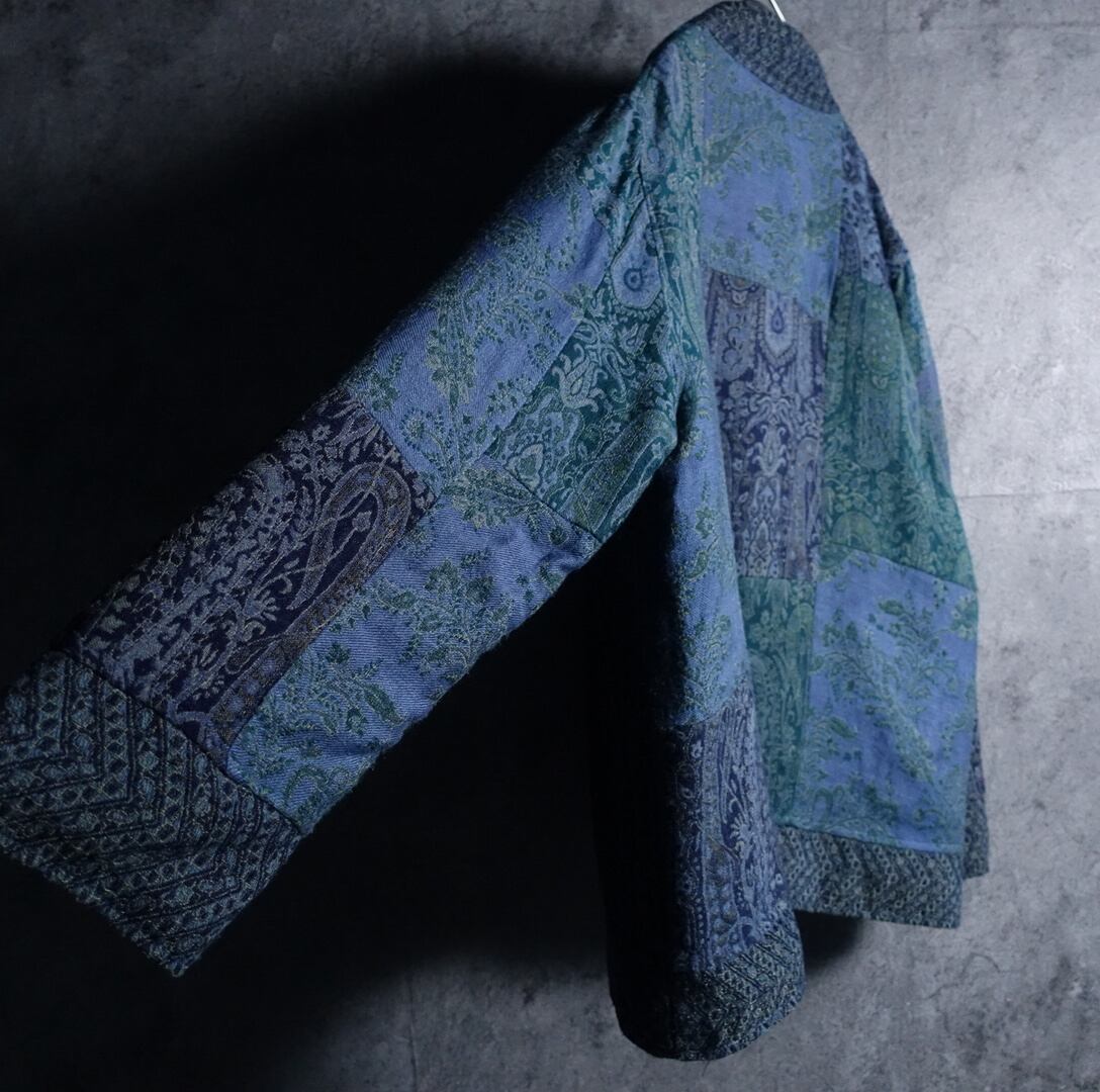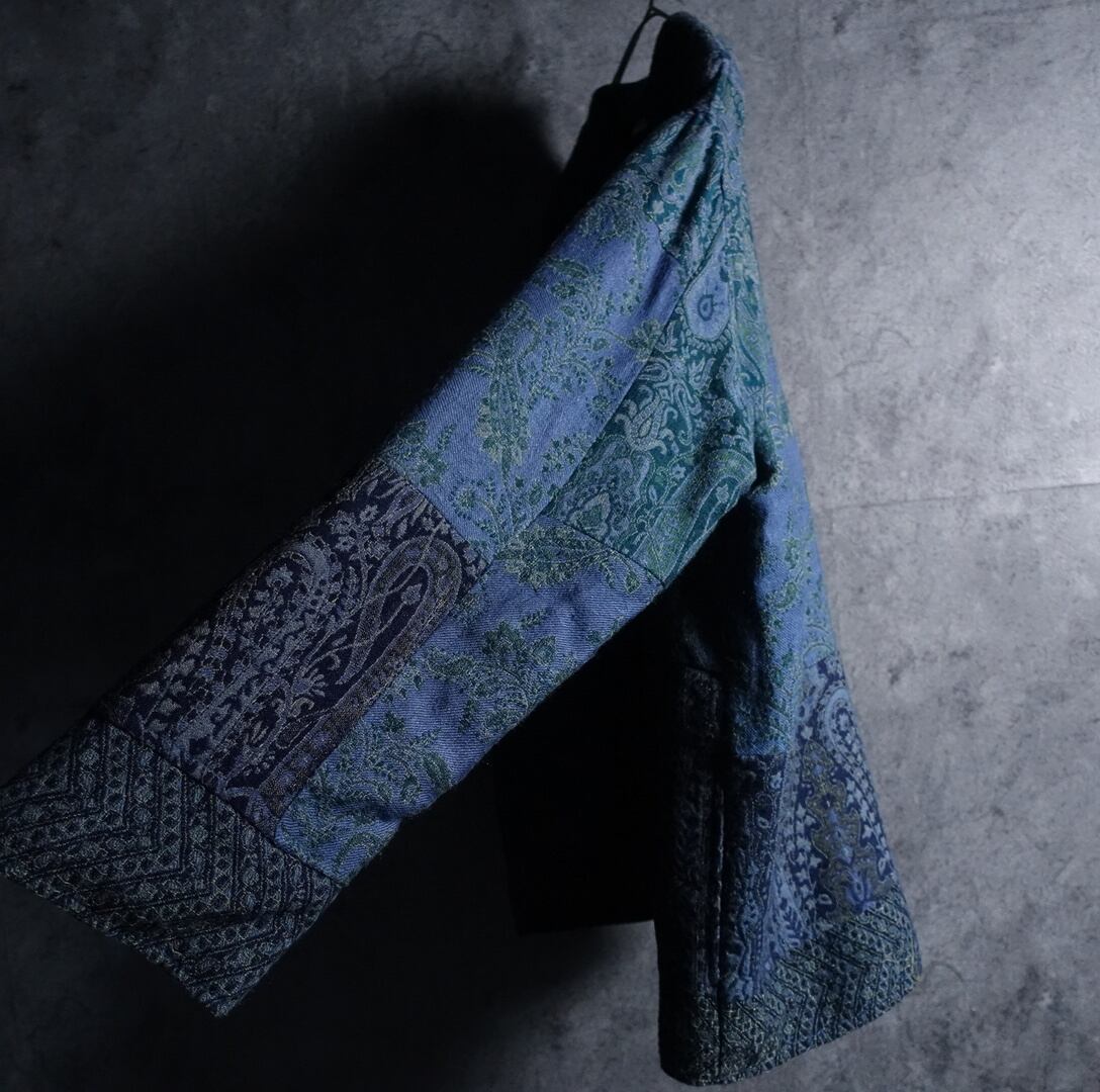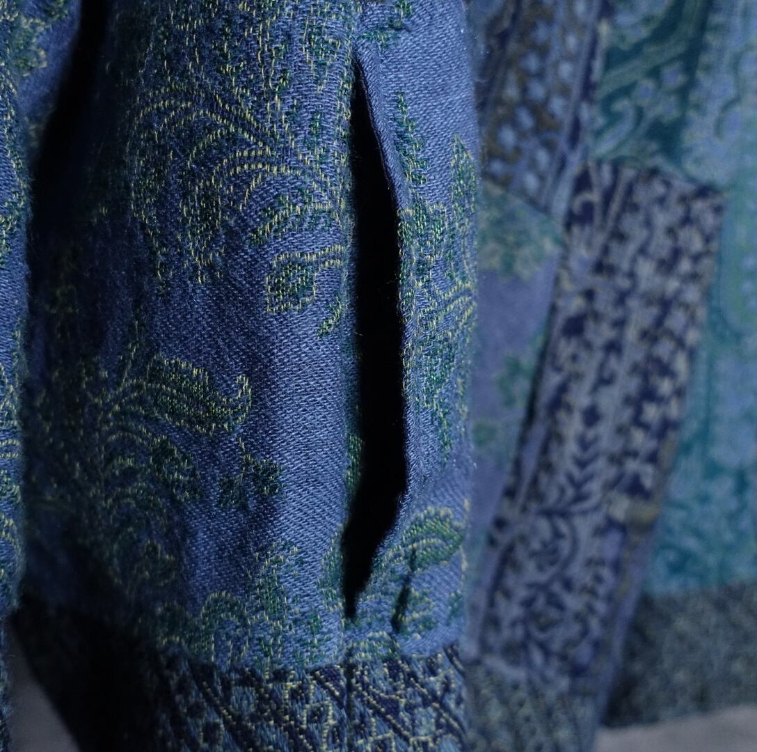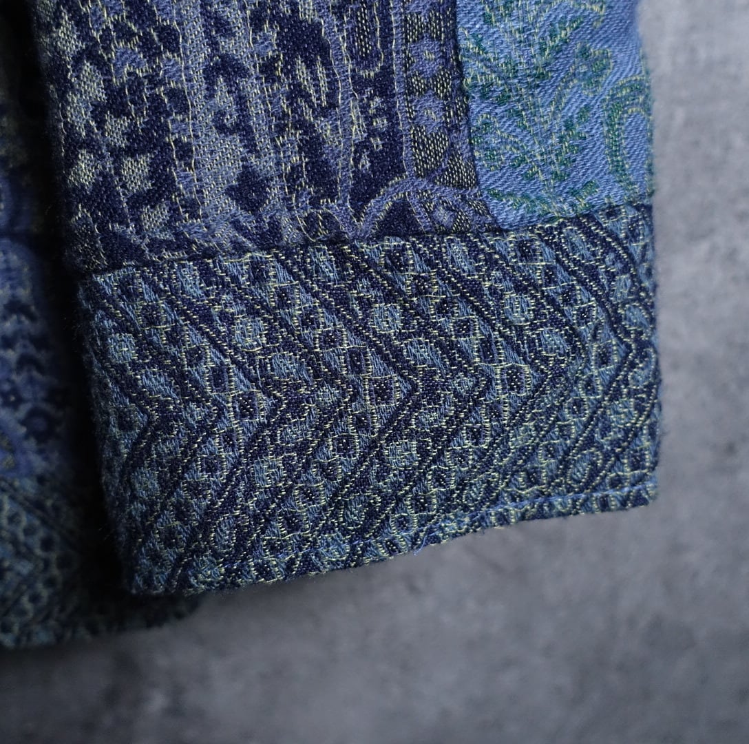 ペイズリー、オリエンタル、ボタニカルをプリントではなく織りで表現し、パッチワーク状に縫い合わせて構築された凝りに凝ったスペシャルなデザイン。