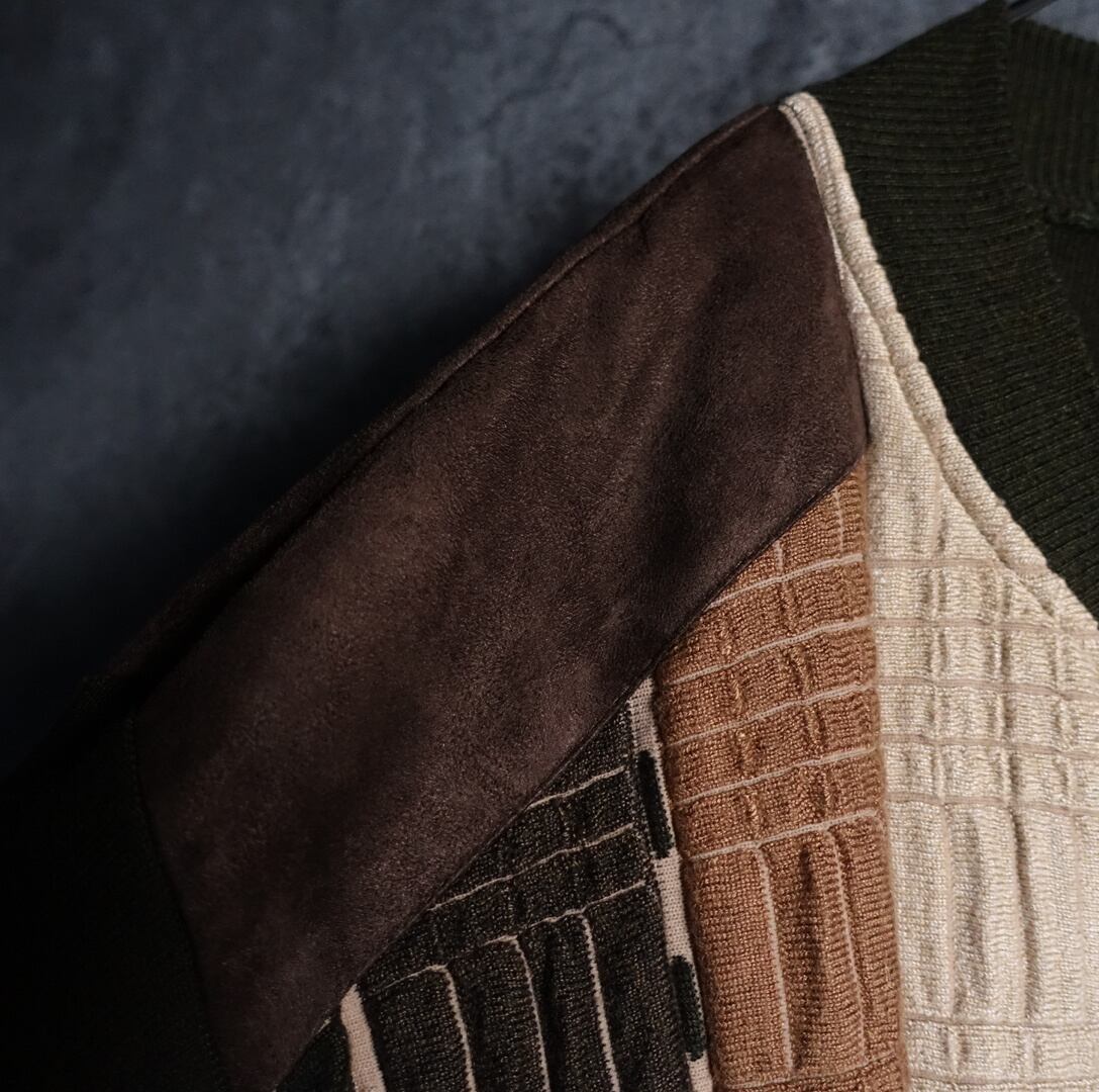 “SILVERSILK” Multicolor 3D & Elbow Patch Design Knit Blouson