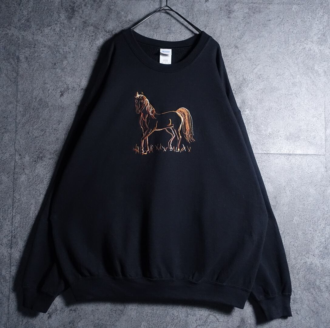 GILDANよりブラックの馬モチーフ刺繍デザインスウェットが入荷です。