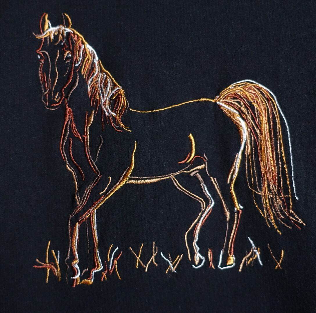 “GILDAN” Black Horse Embroidery Design Sweat