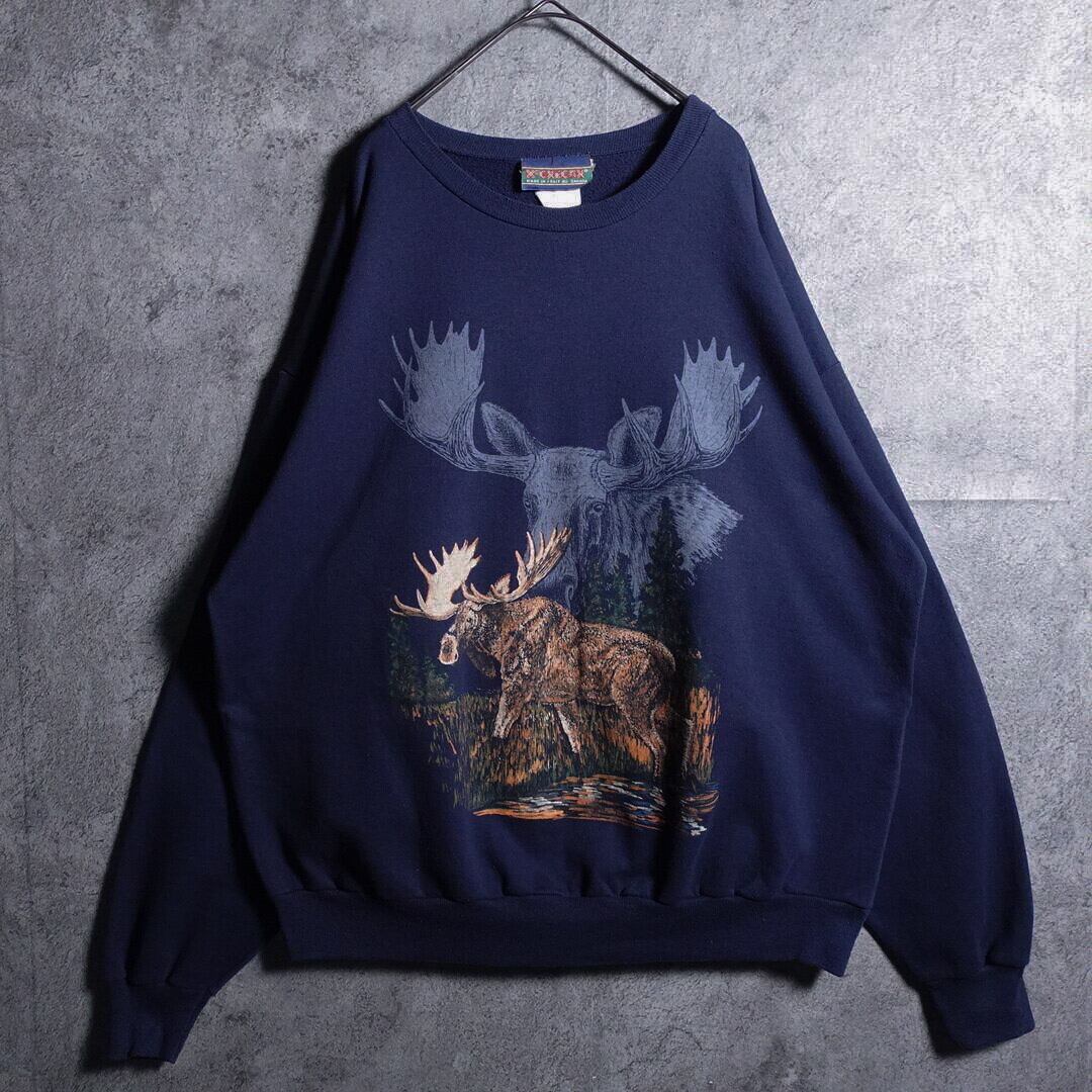 90s “McGREGOR” Navy animal reindeer design sweat
