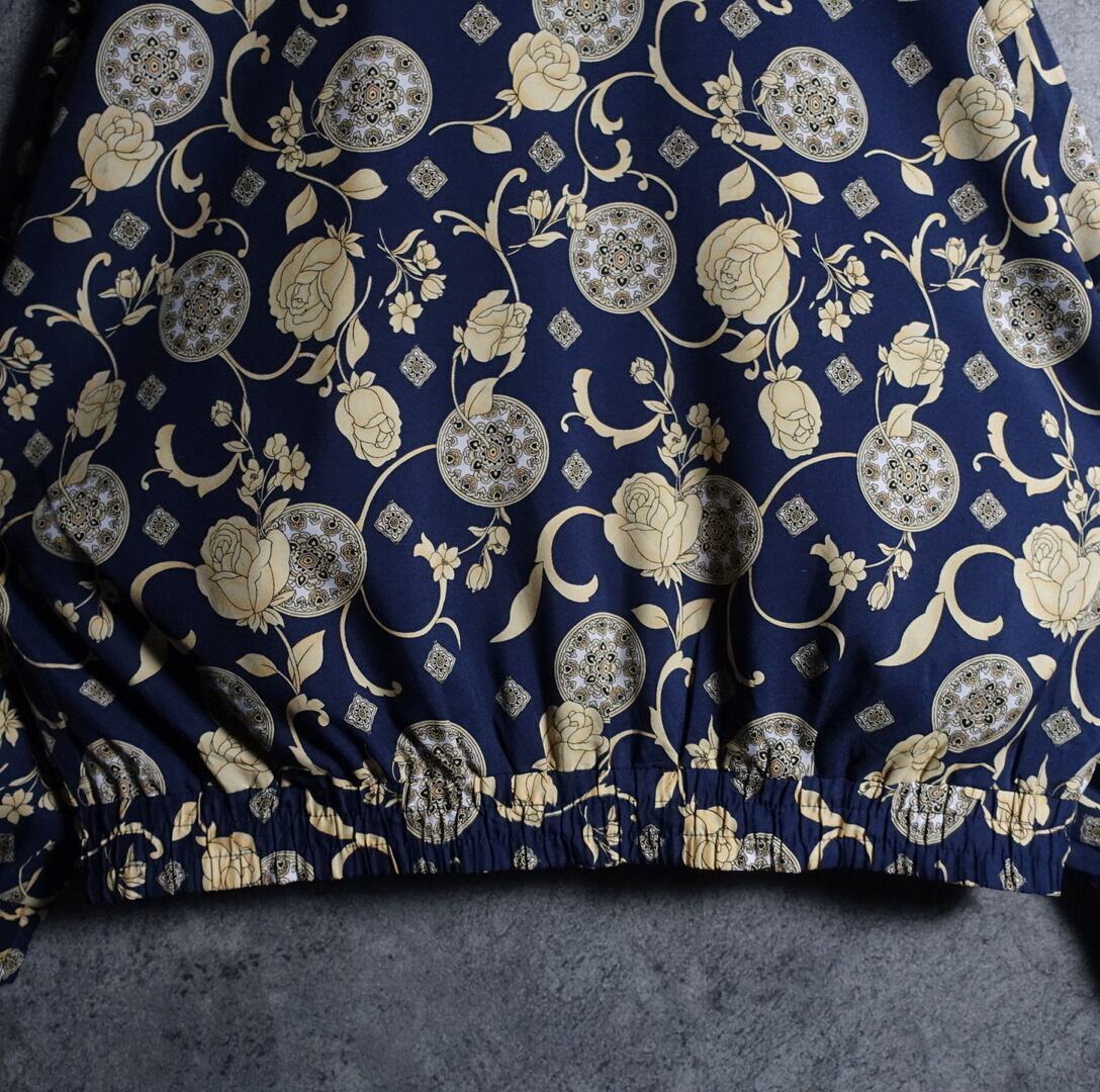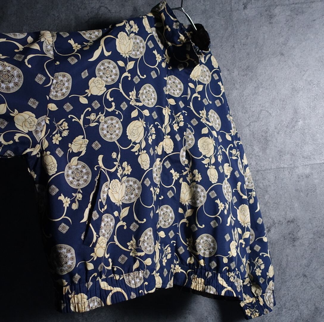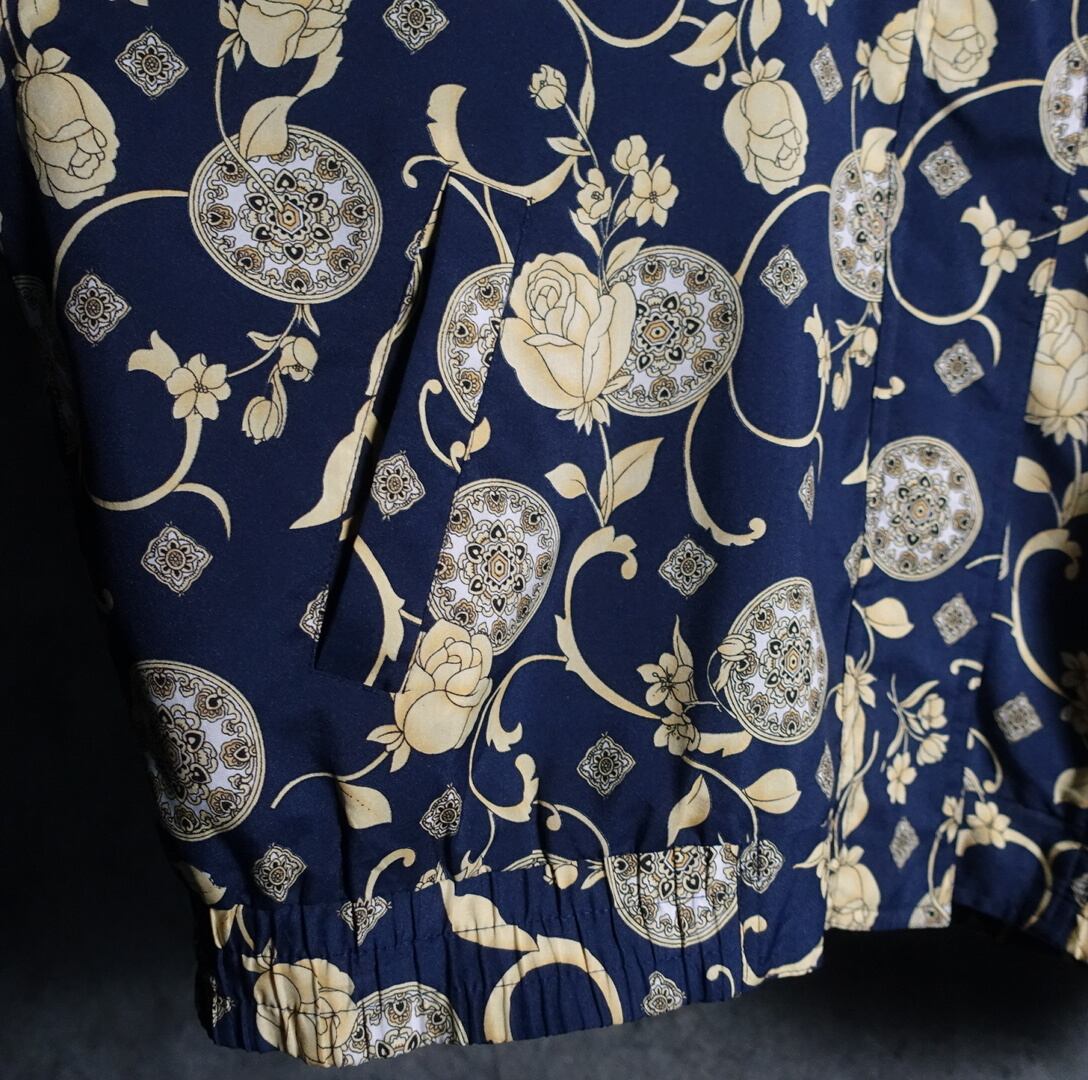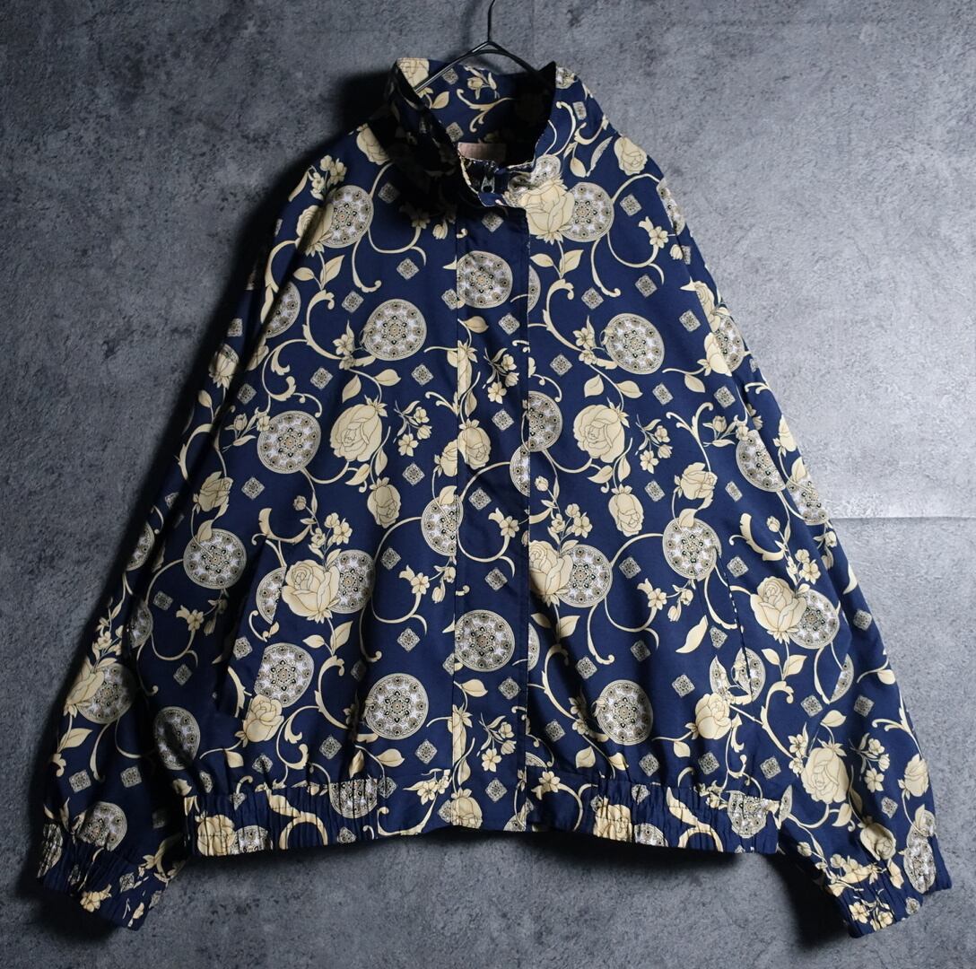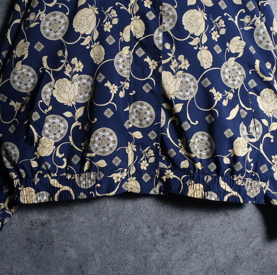 Multicolor Rose & Ornament Motif Design Nylon Blouson