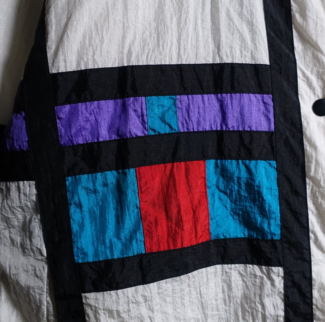 スペシャルなモンドリアンデザインナイロンハーフコートが入荷です。