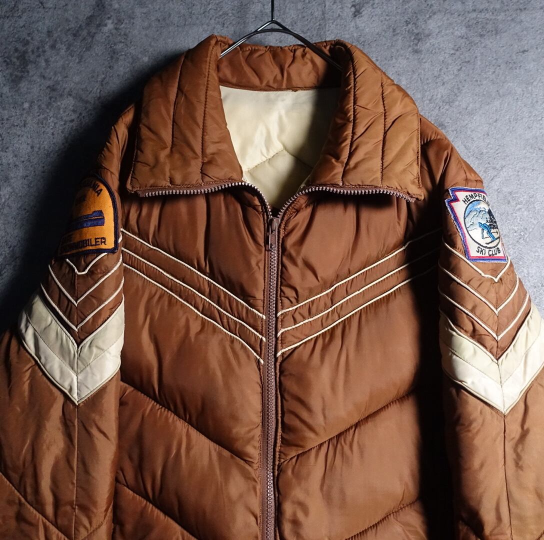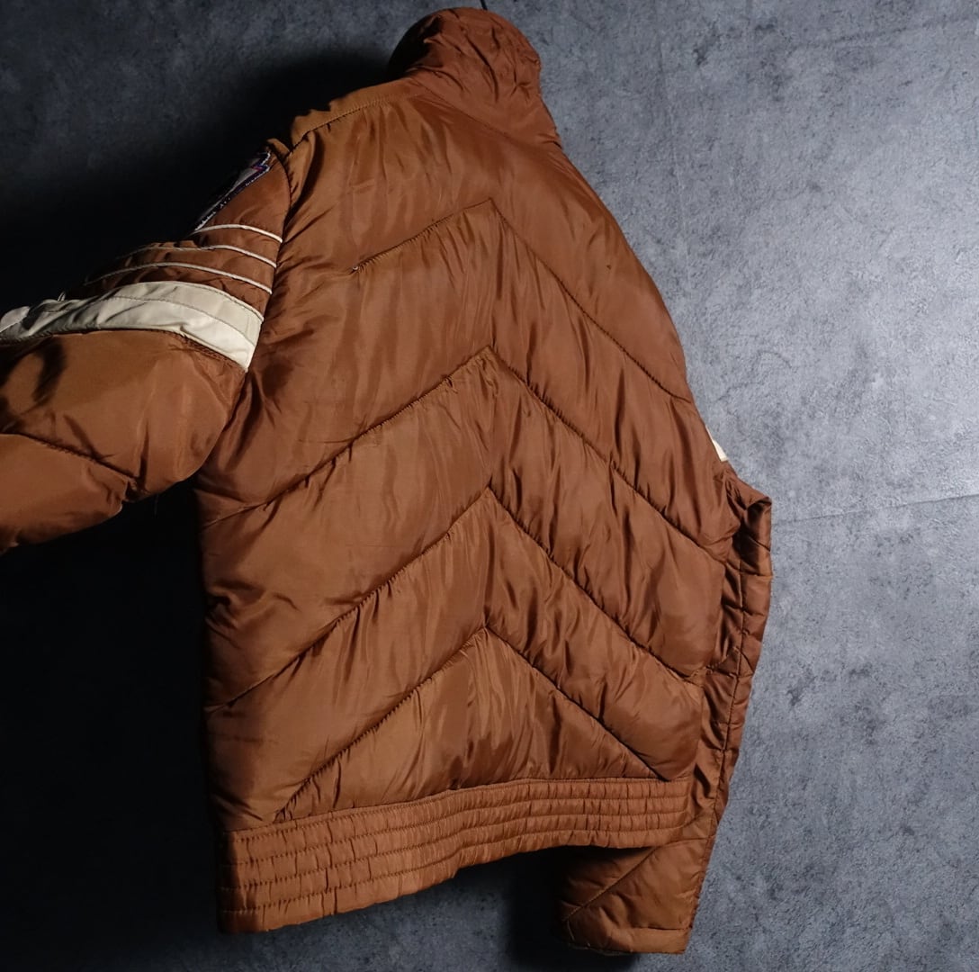 90s “WHITE STAG” Black Patch Design Double Zip Short Down Jacket