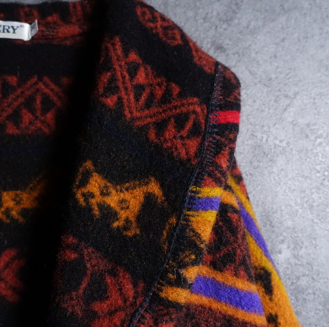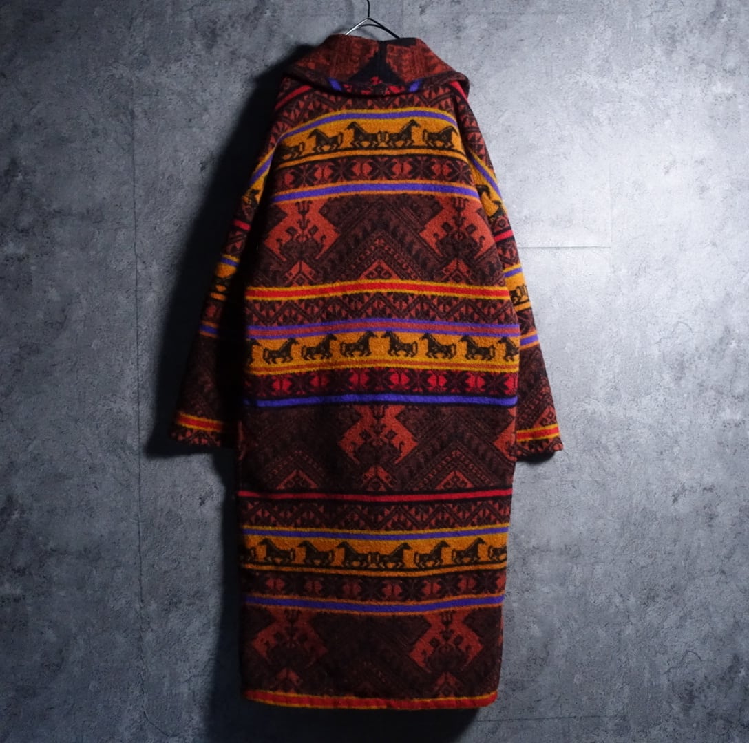 “GALLERY” Multicolor Horse & Geometric Design Maxi Wool Double Coat