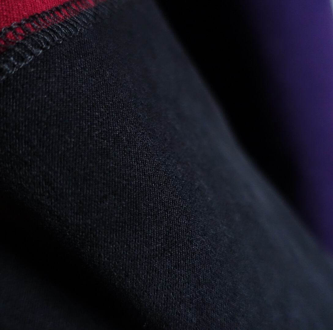 フロントにレッド、パープル、ブラックのカラーをパネルのように切替した洒落たデザイン。