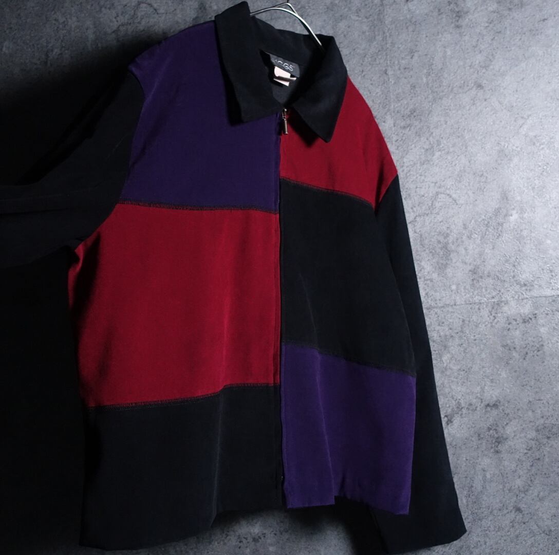 “BRIGGS” Multicolor Panel Design Peachskin Zip Jacket