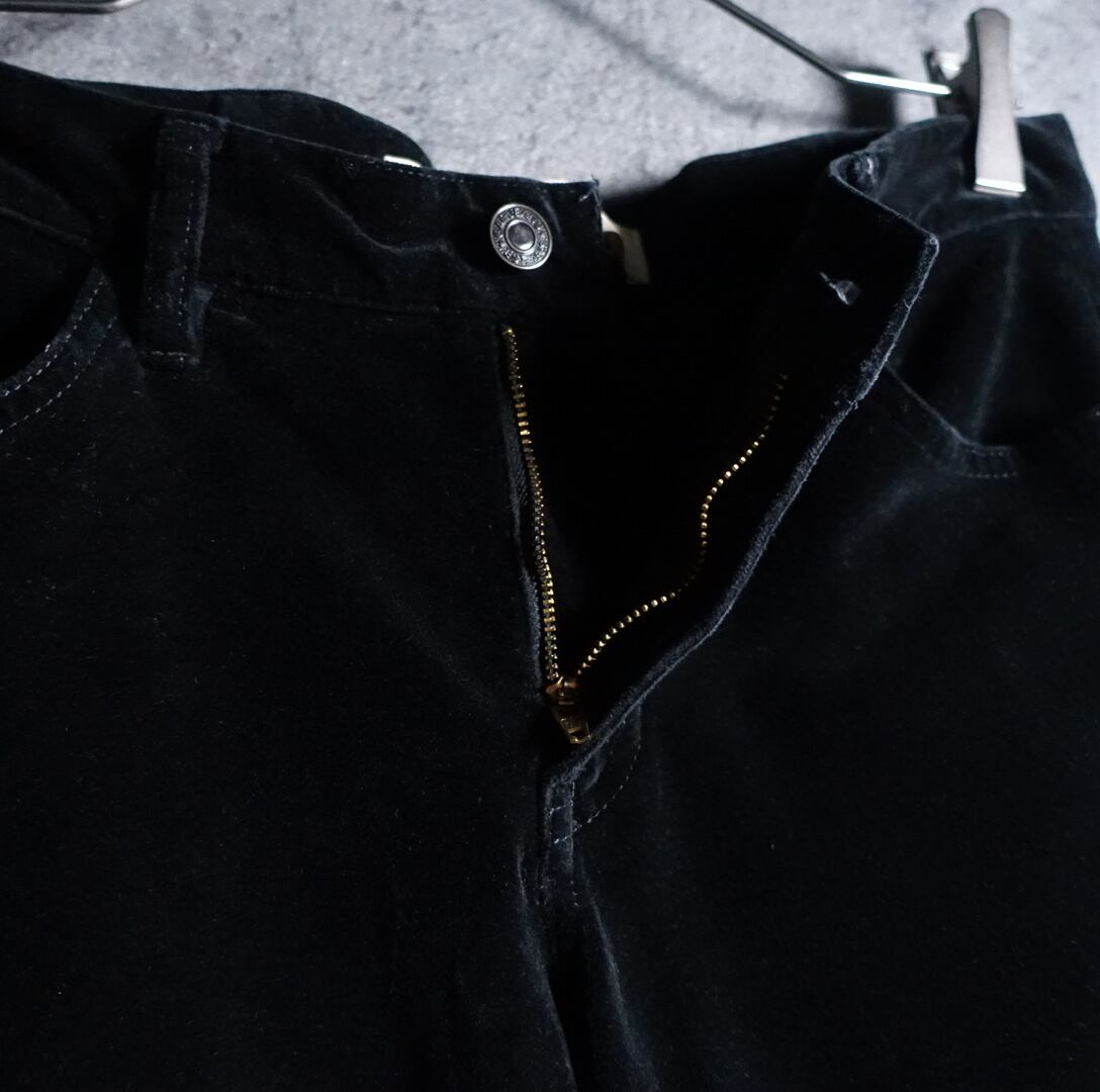 生地はパンツでは比較的珍しいコットンのベルベット生地となっており、光沢感があり高級感のあるラグジュアリーな雰囲気を醸し出しています。