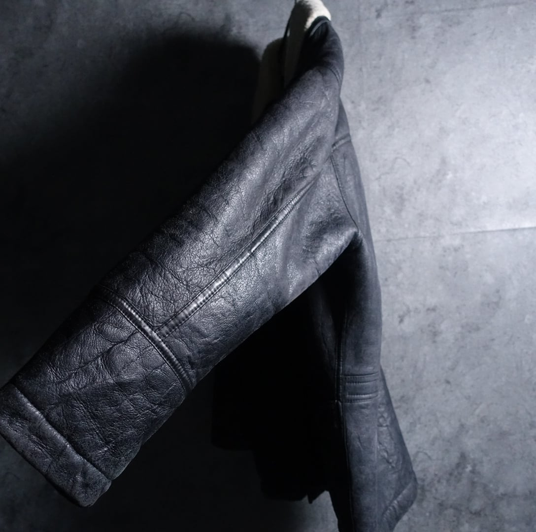 もっちりとしたラムレザーのムートン生地を使用した希少なブラックのリアルムートン。