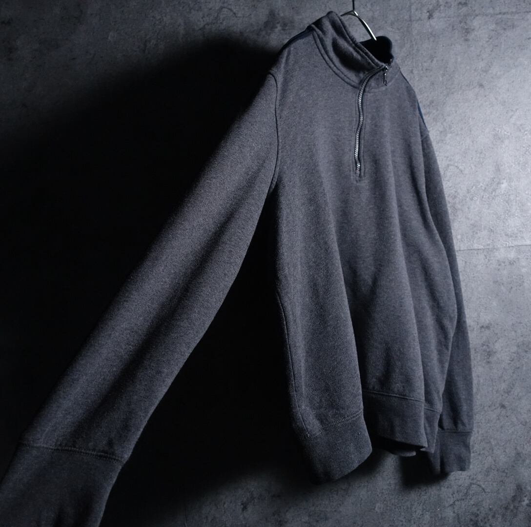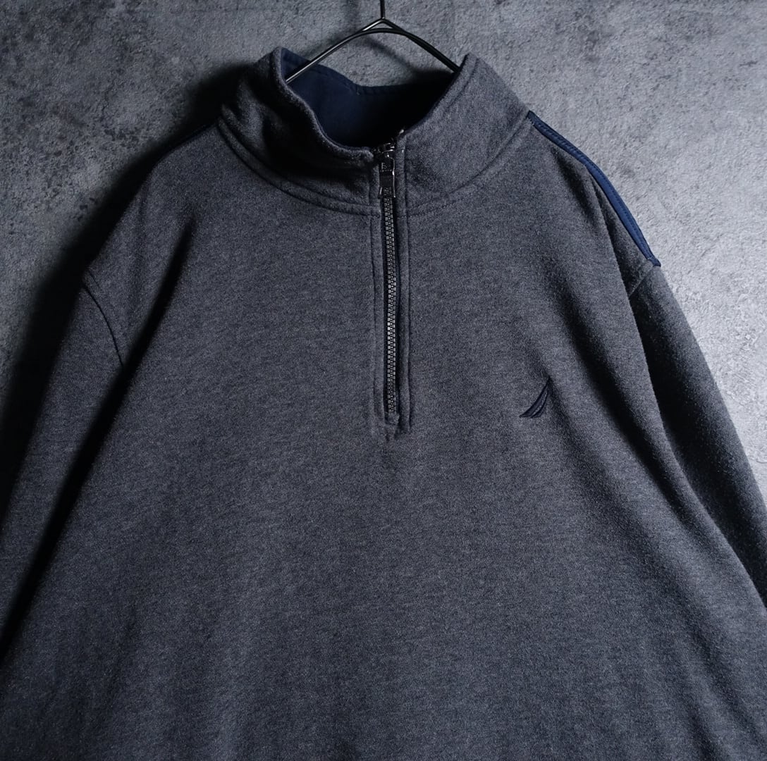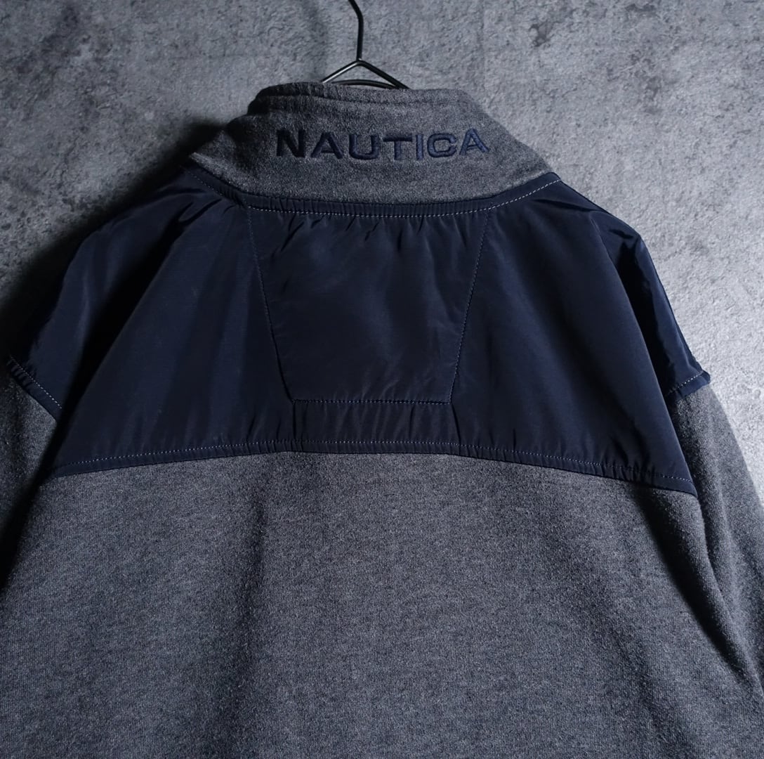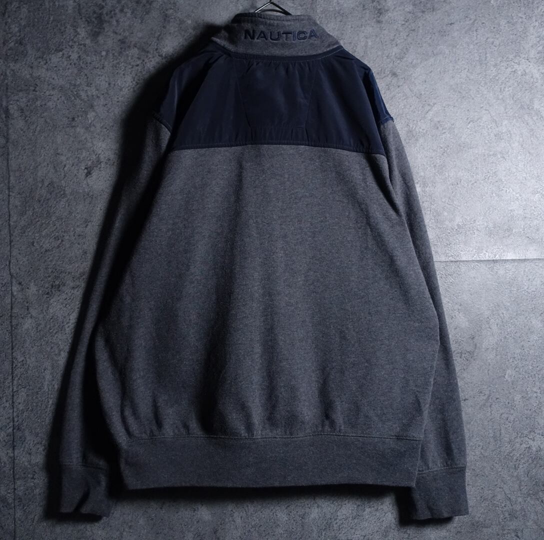 00s “NAUTICA” Gray Logo & Nylon Switching Design Half Zip Sweat