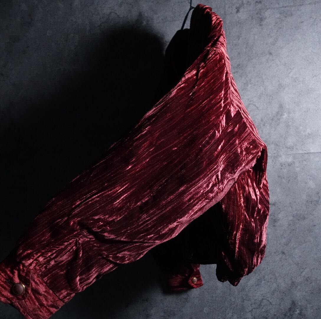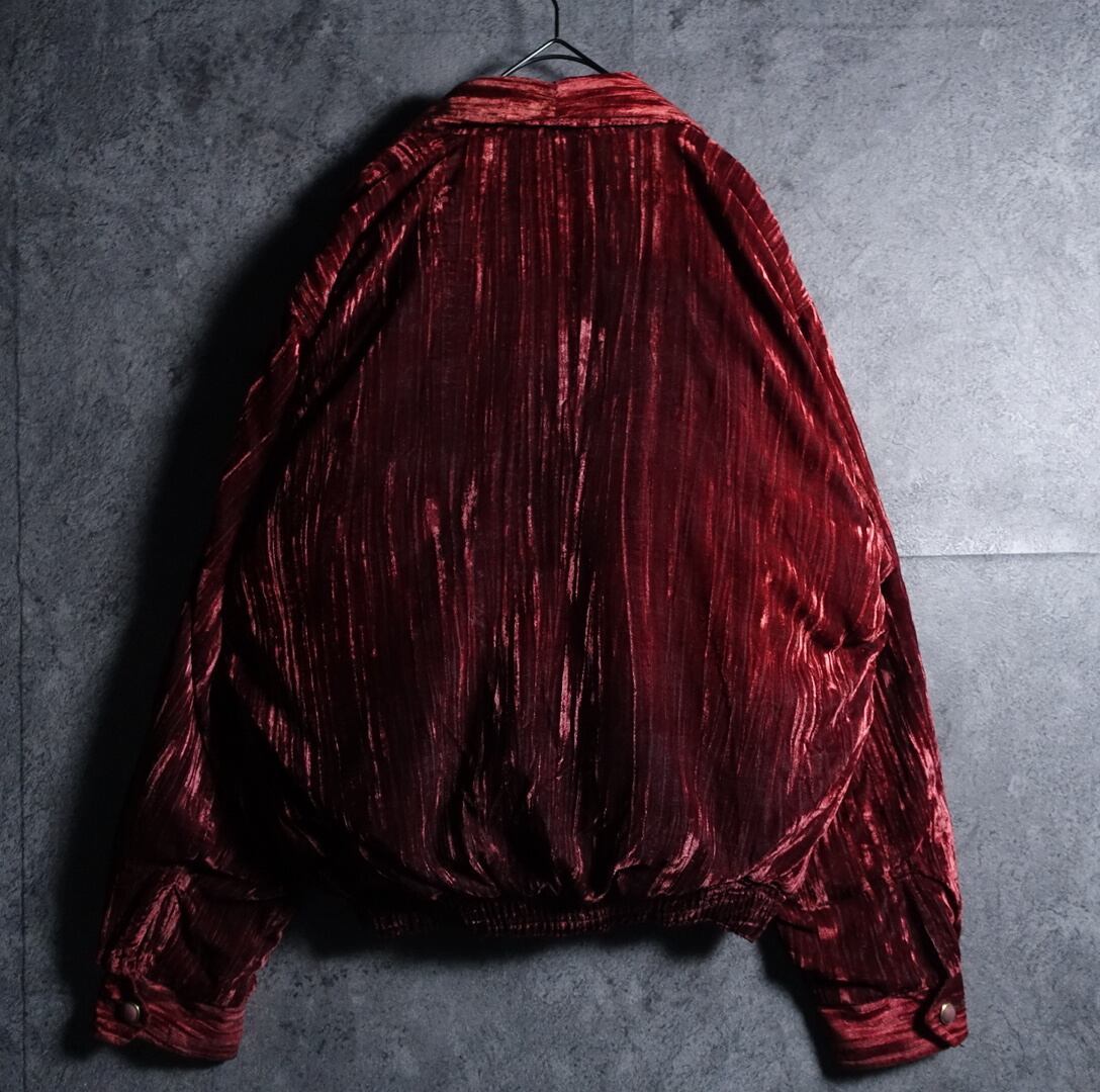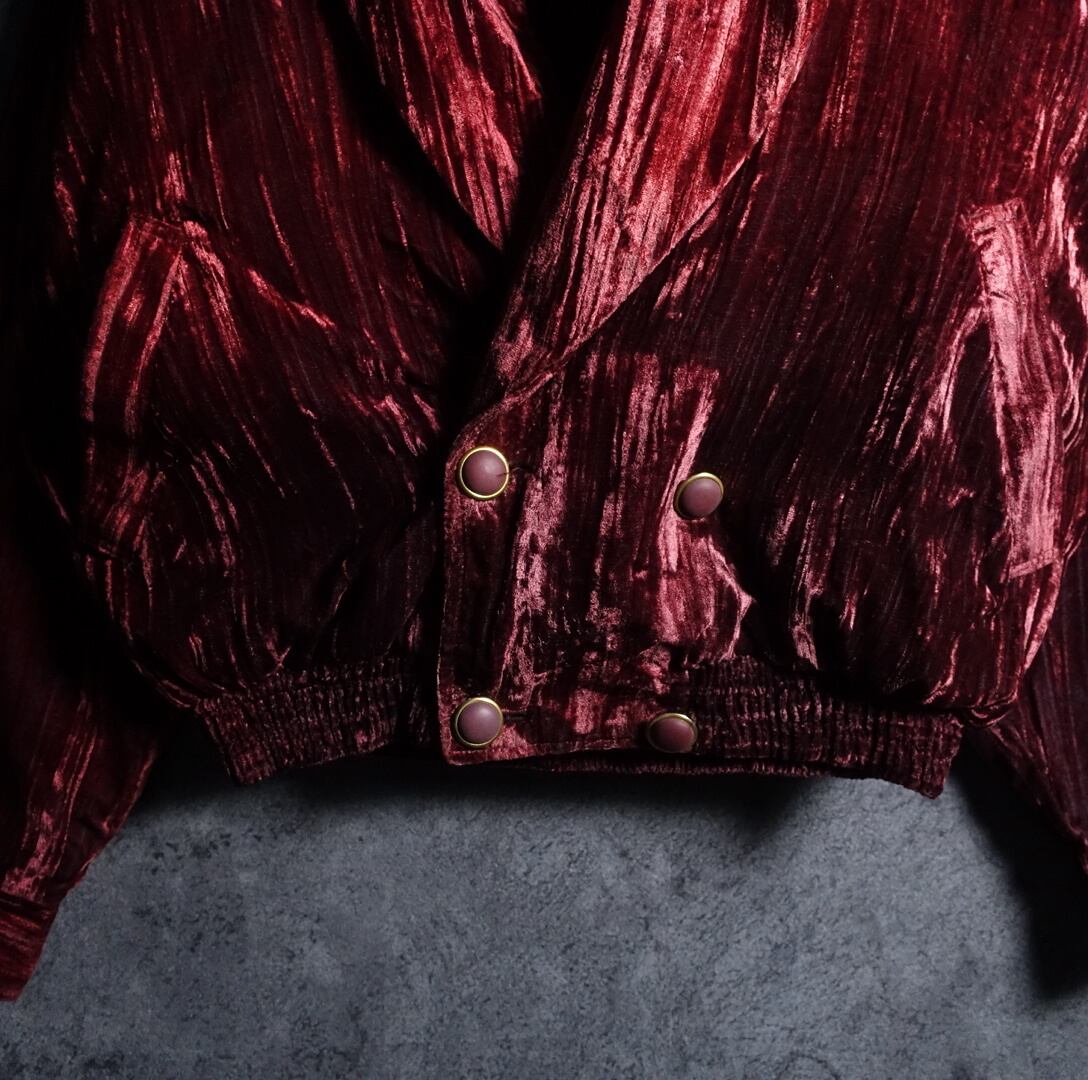 ボルドーのベロアプリーツデザインショートブルゾンが入荷です。