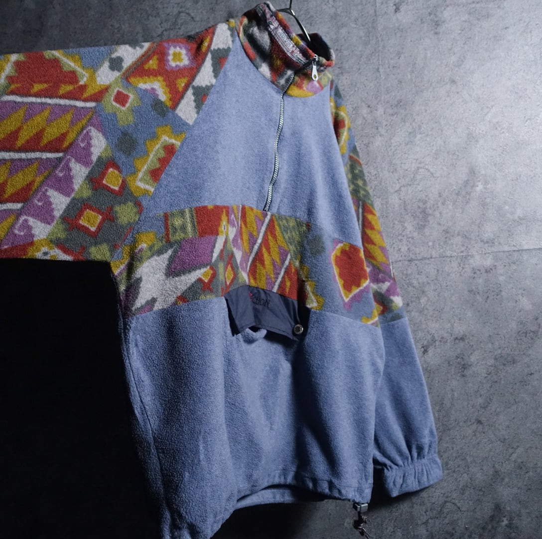 Multicolor Geometric Pattern Switching Design Fleece Anorak Parka