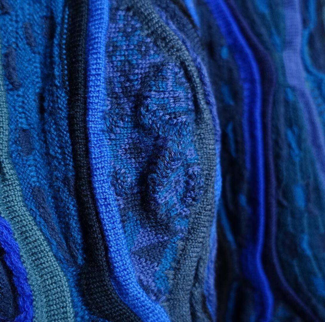 様々な種類の立体的な3Dのうねりのあるニッティングと幾何学模様を全面にあしらったスペシャルなデザイン。
