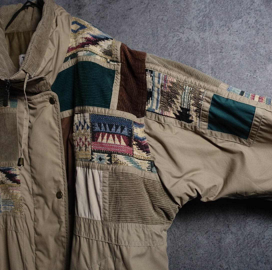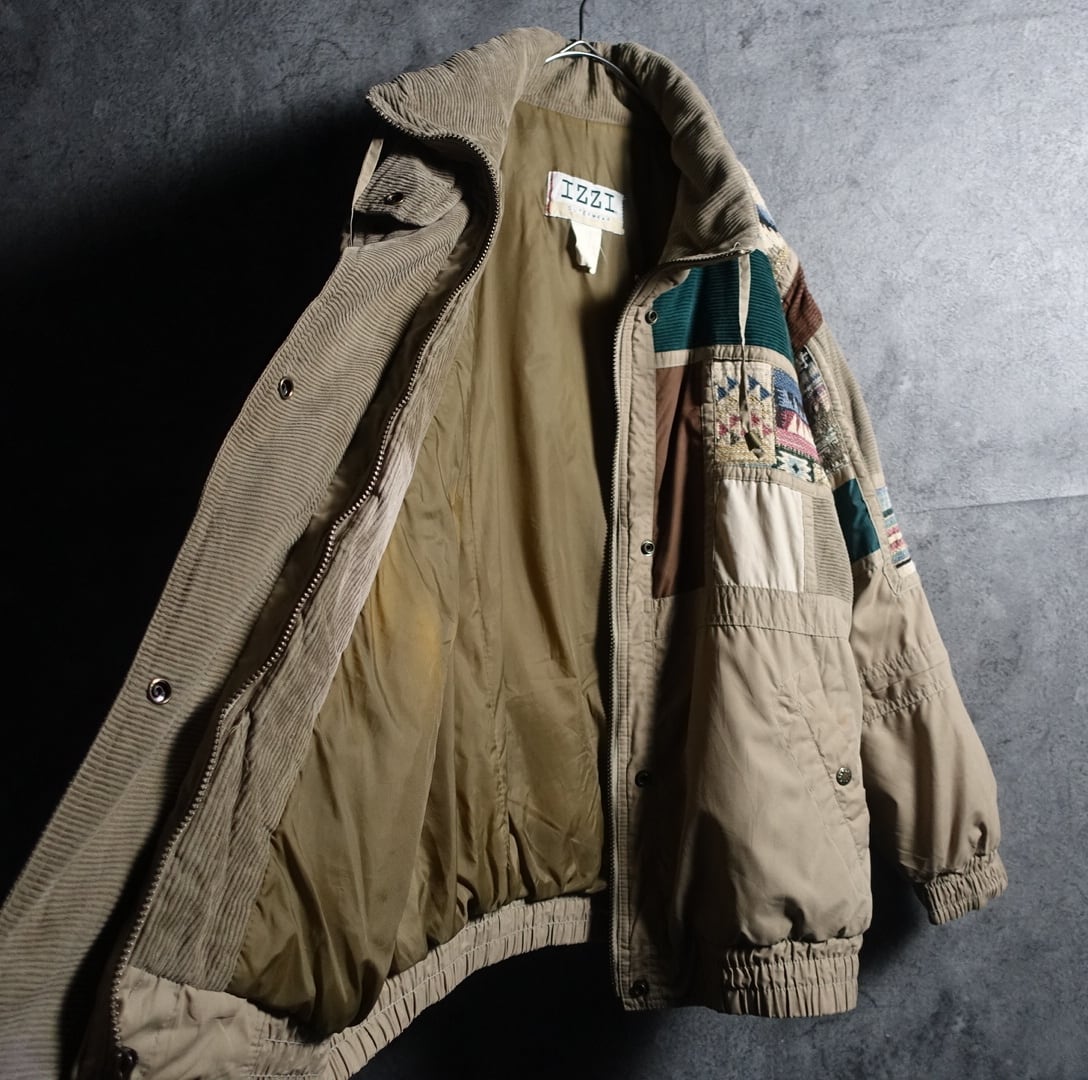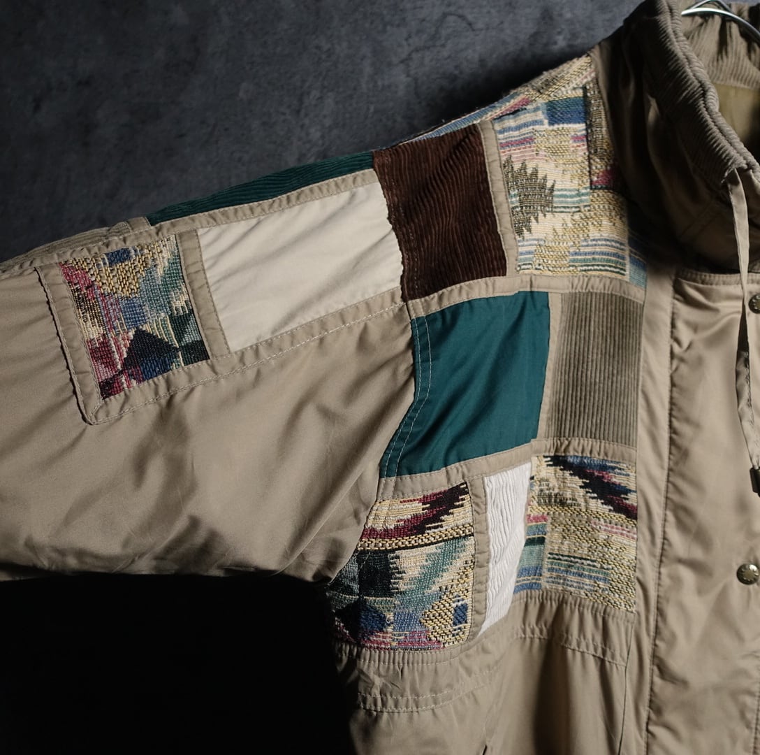 “IZZI” Beige Corduroy & Gobelins Patchwork Design Filled Jacket