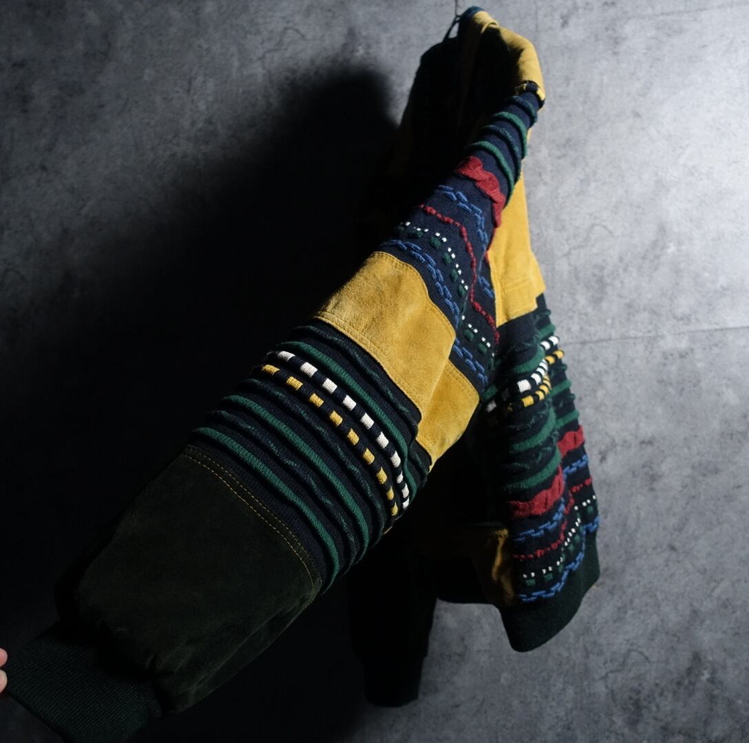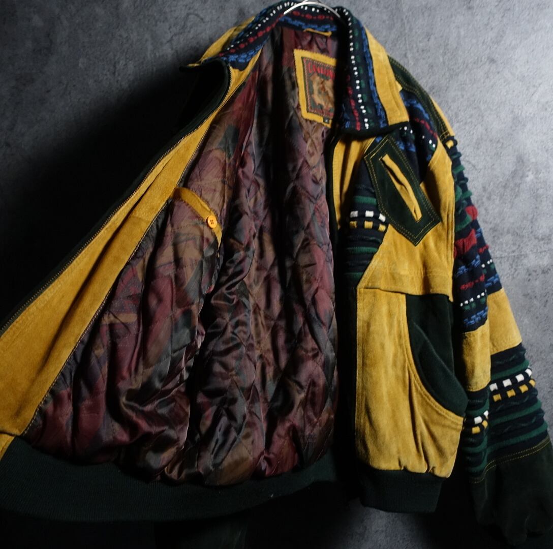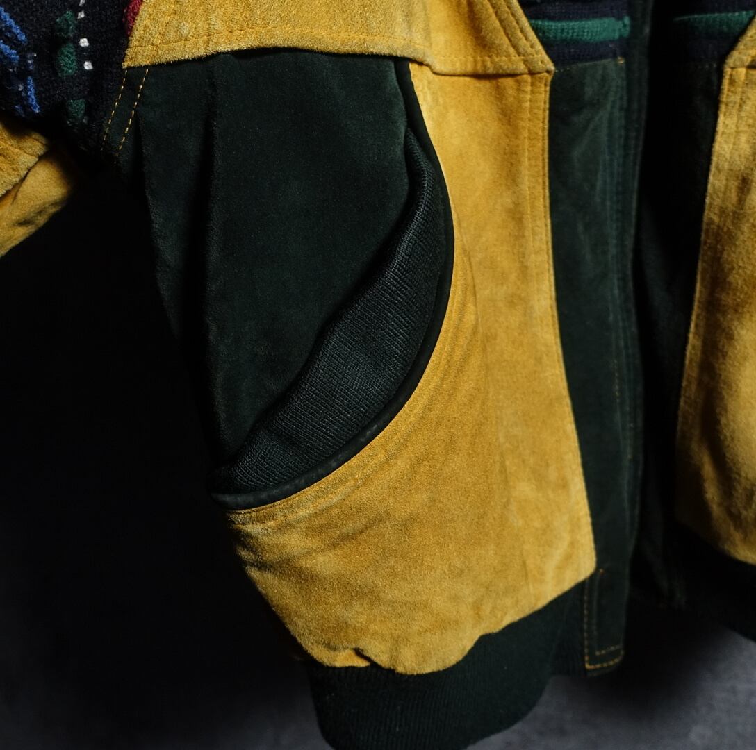 Multicolor 3D x Suede Leather Switching Design Zip Blouson