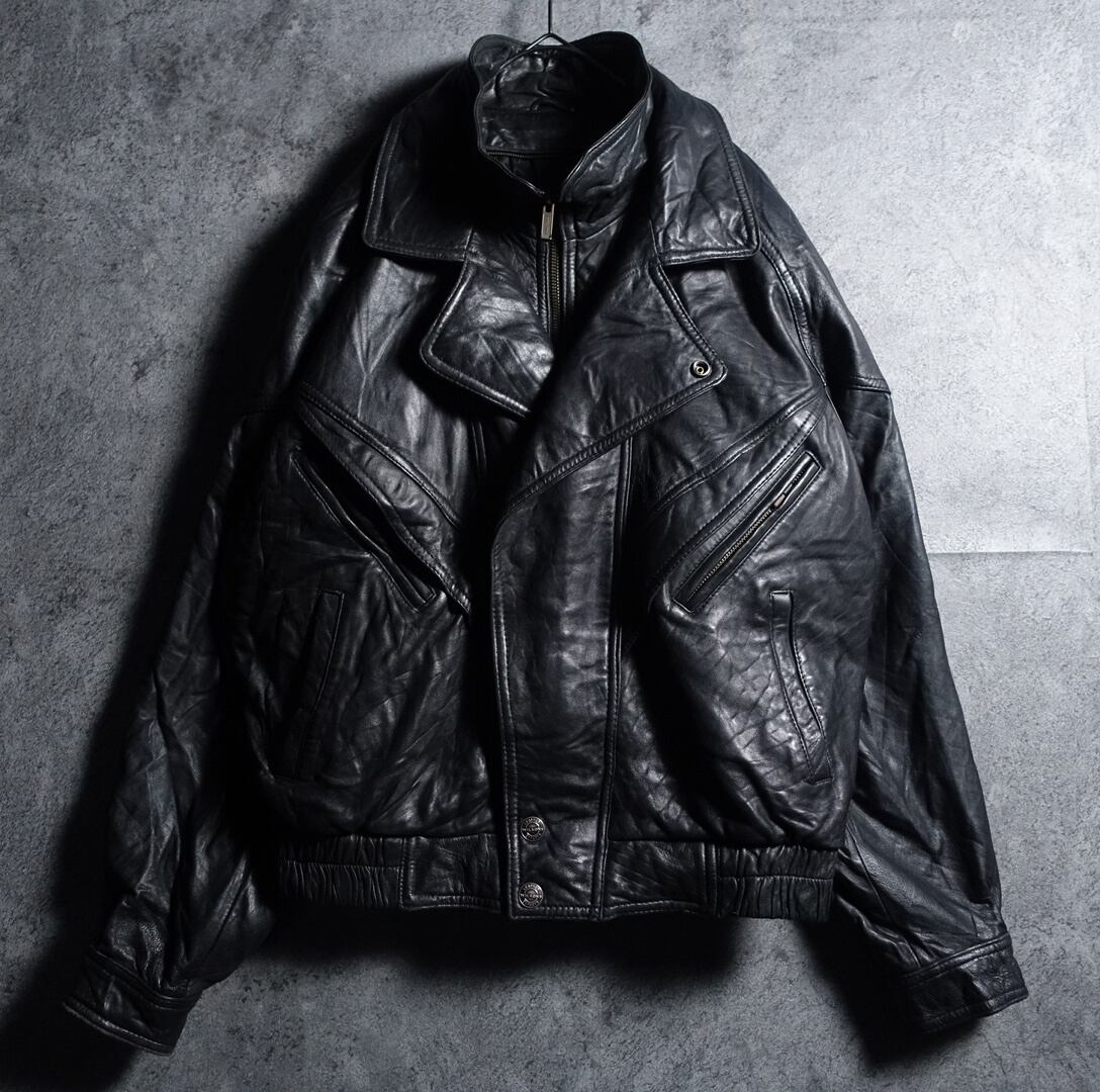 “WILSONS” Black Layered Neck Design Leather Short Jacket