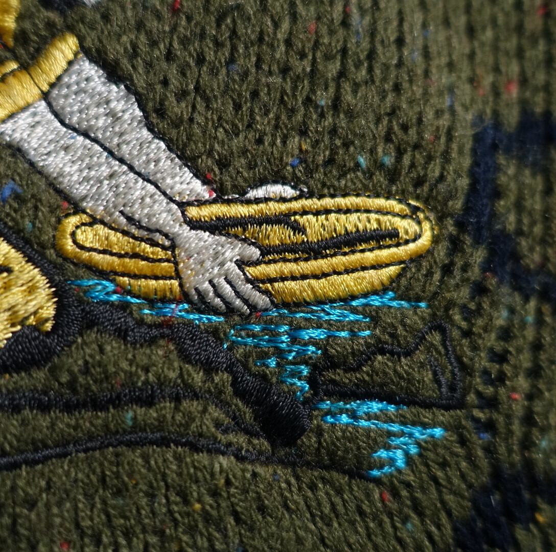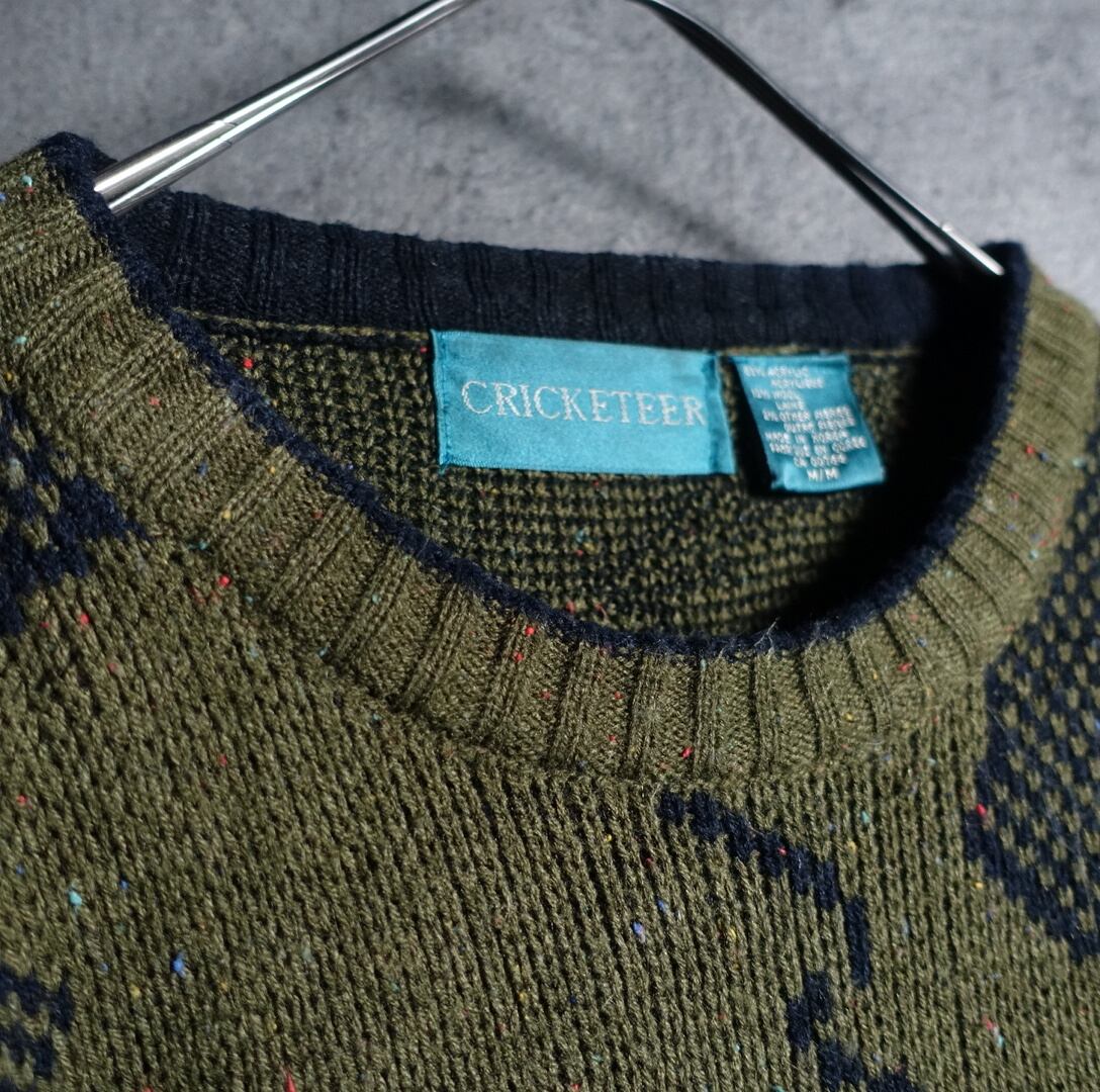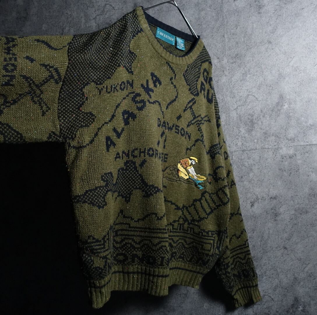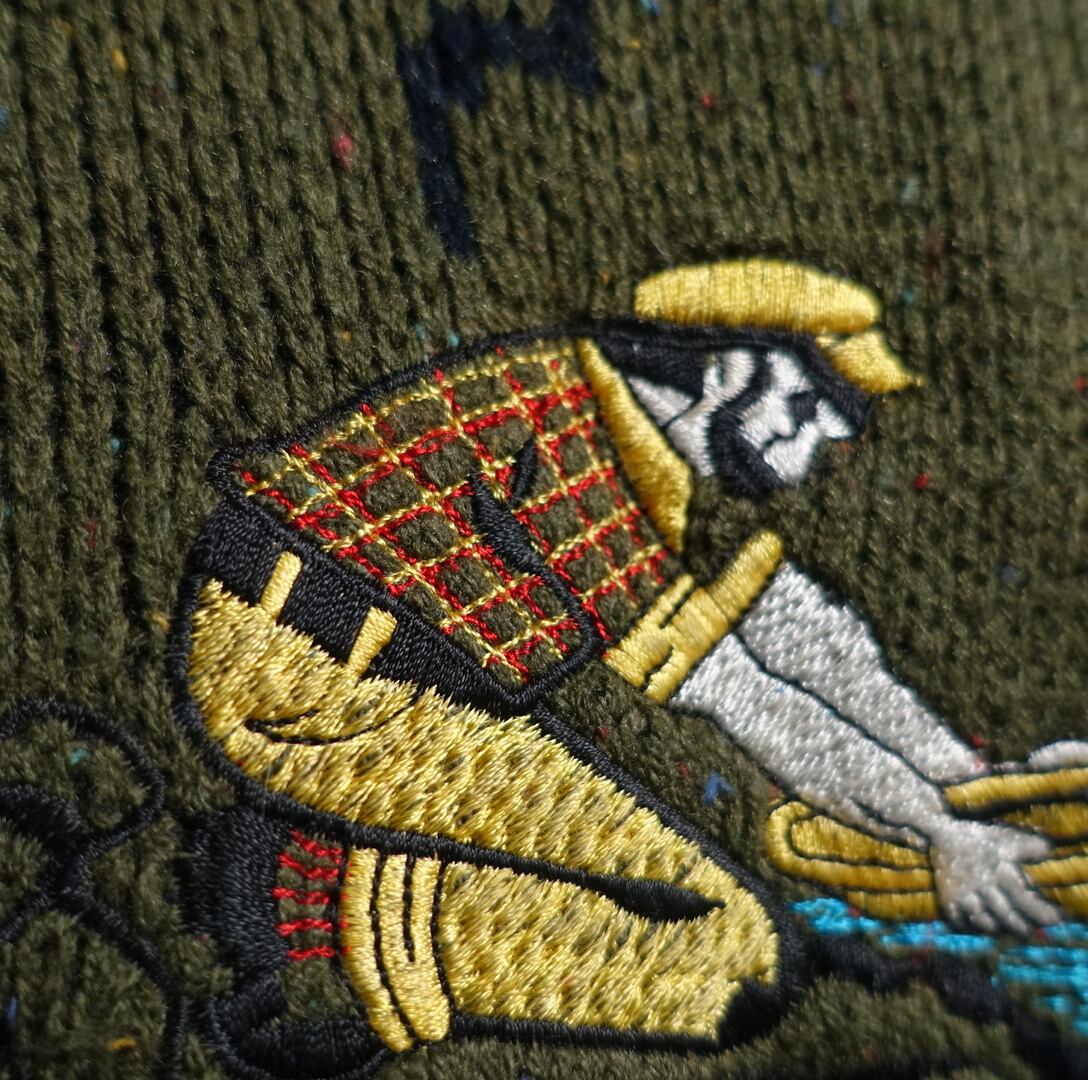 “CRICKETER” Green Map Pattern & Embroidery Design Knit