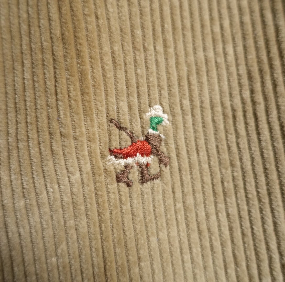 90s Beige Duck Motif Embroidery Design Wide Corduroy Pants