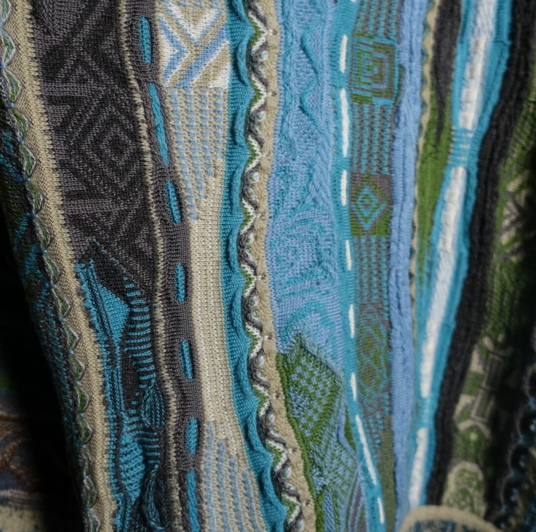 様々な種類の立体的な3Dのうねりのあるニッティングと複数の幾何学模様を全面に散りばめたCOOGIの中でも非常に凝ったスペシャルなデザイン。