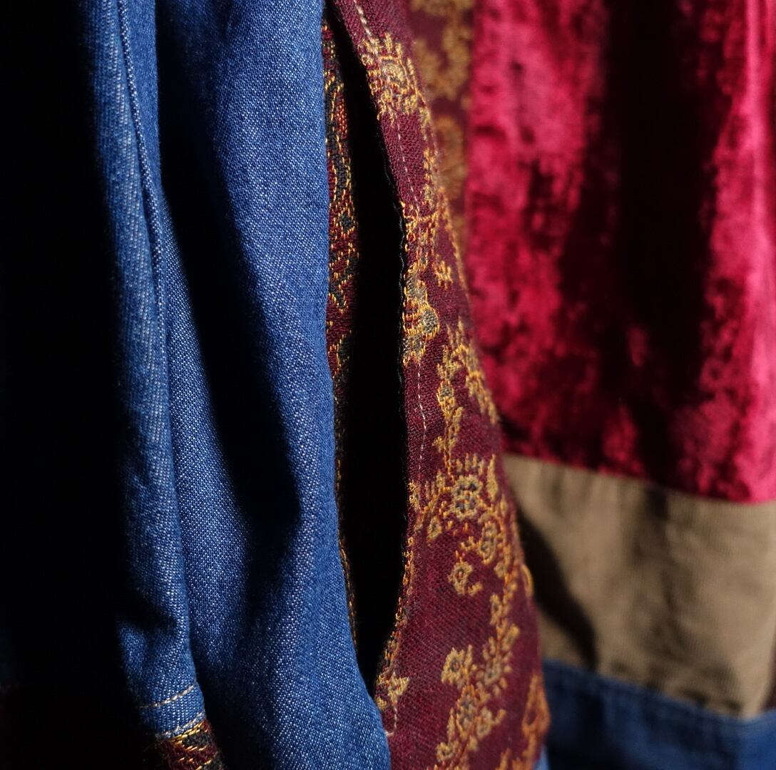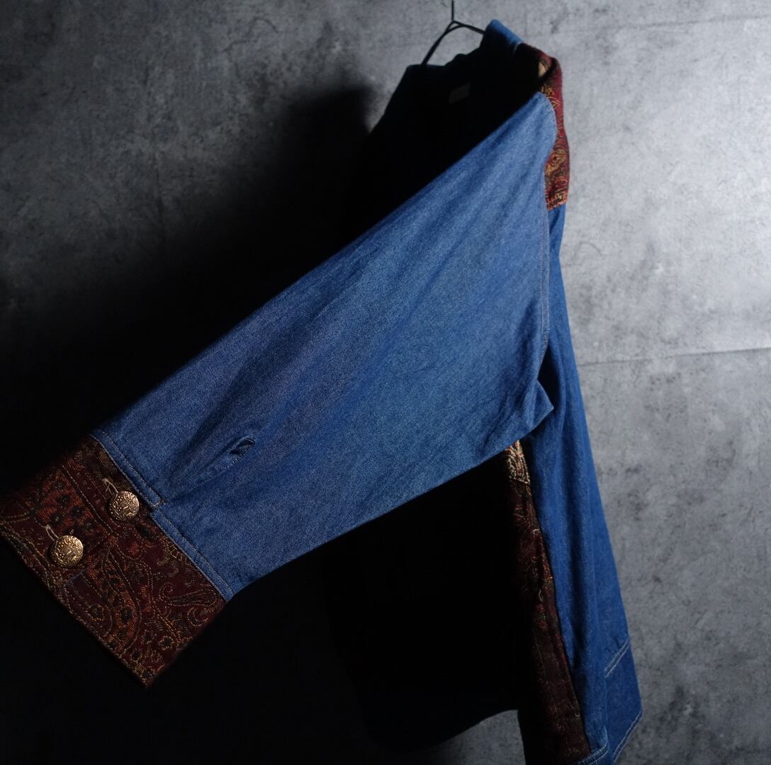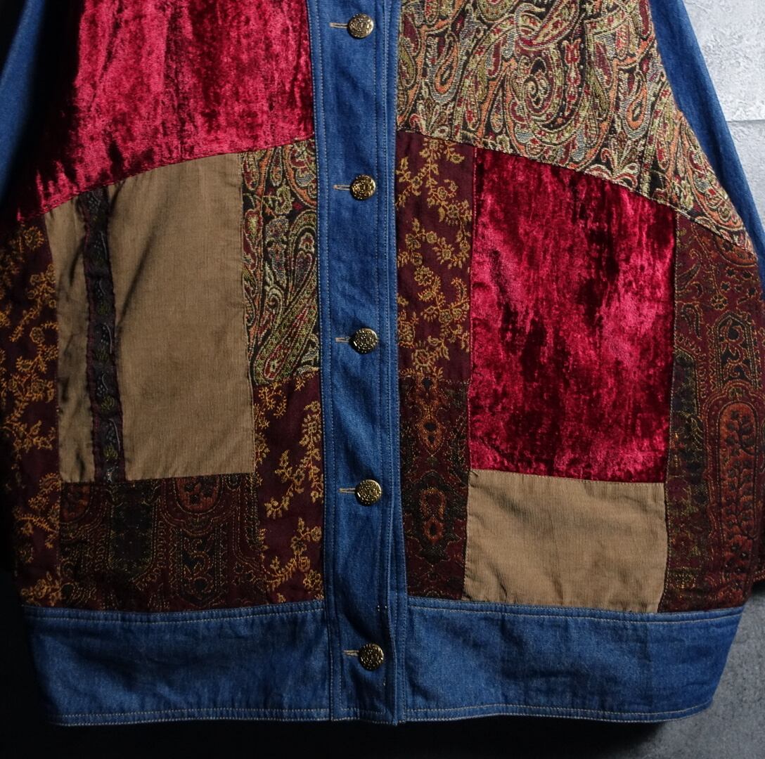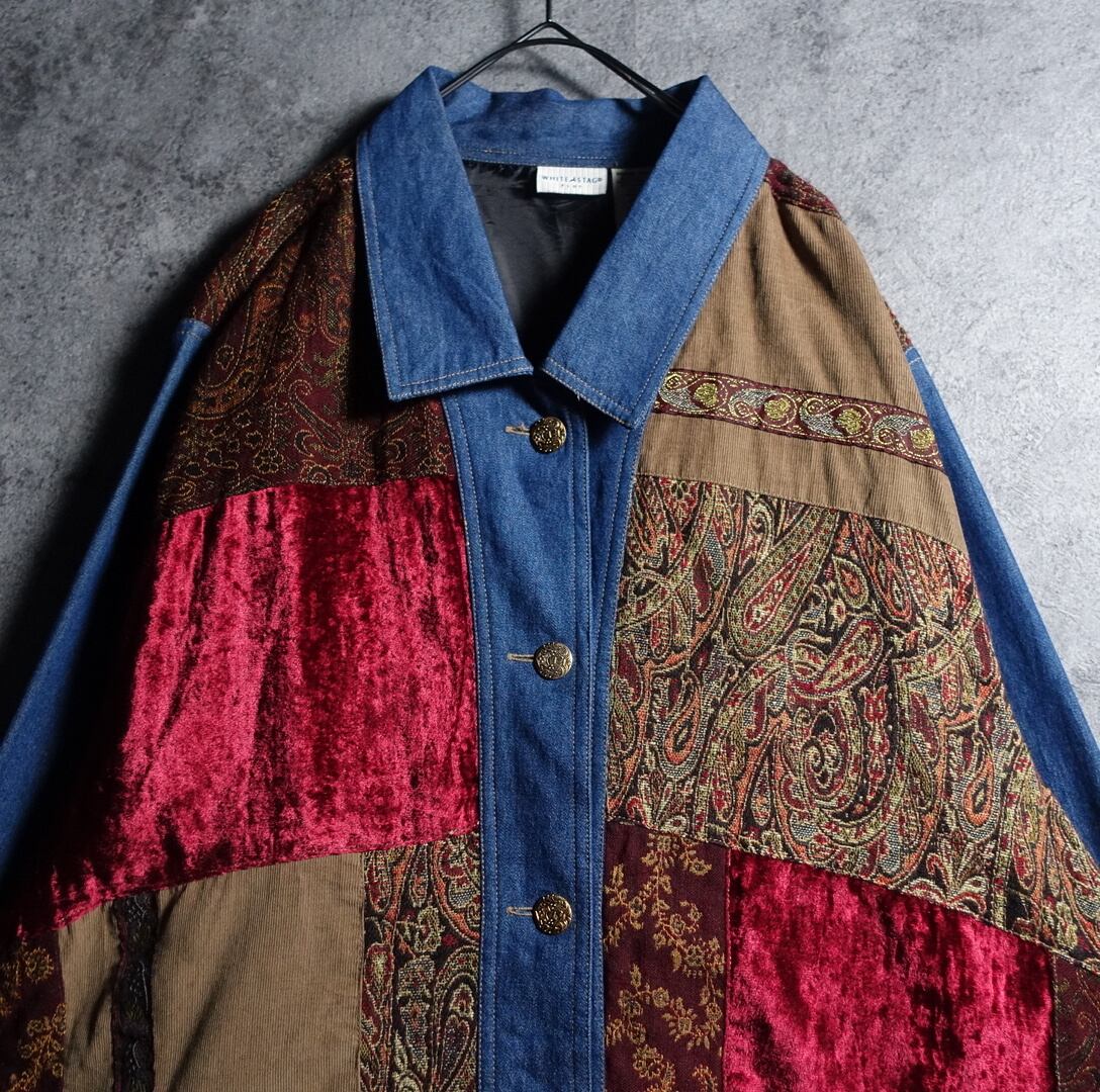“WHITE STAG” Jacquard x Velor x Corduroy Patchwork Design Denim Jacket