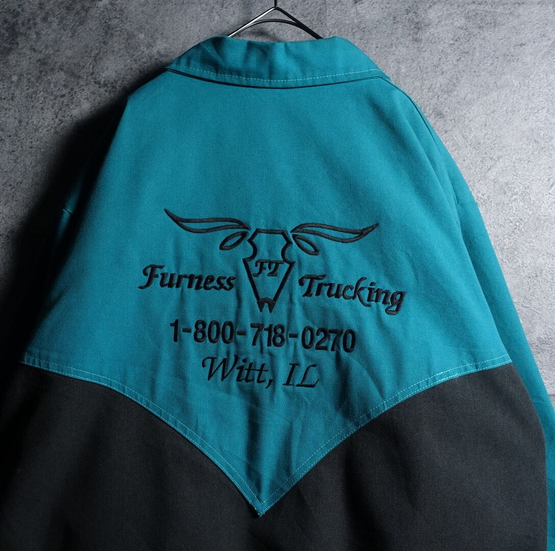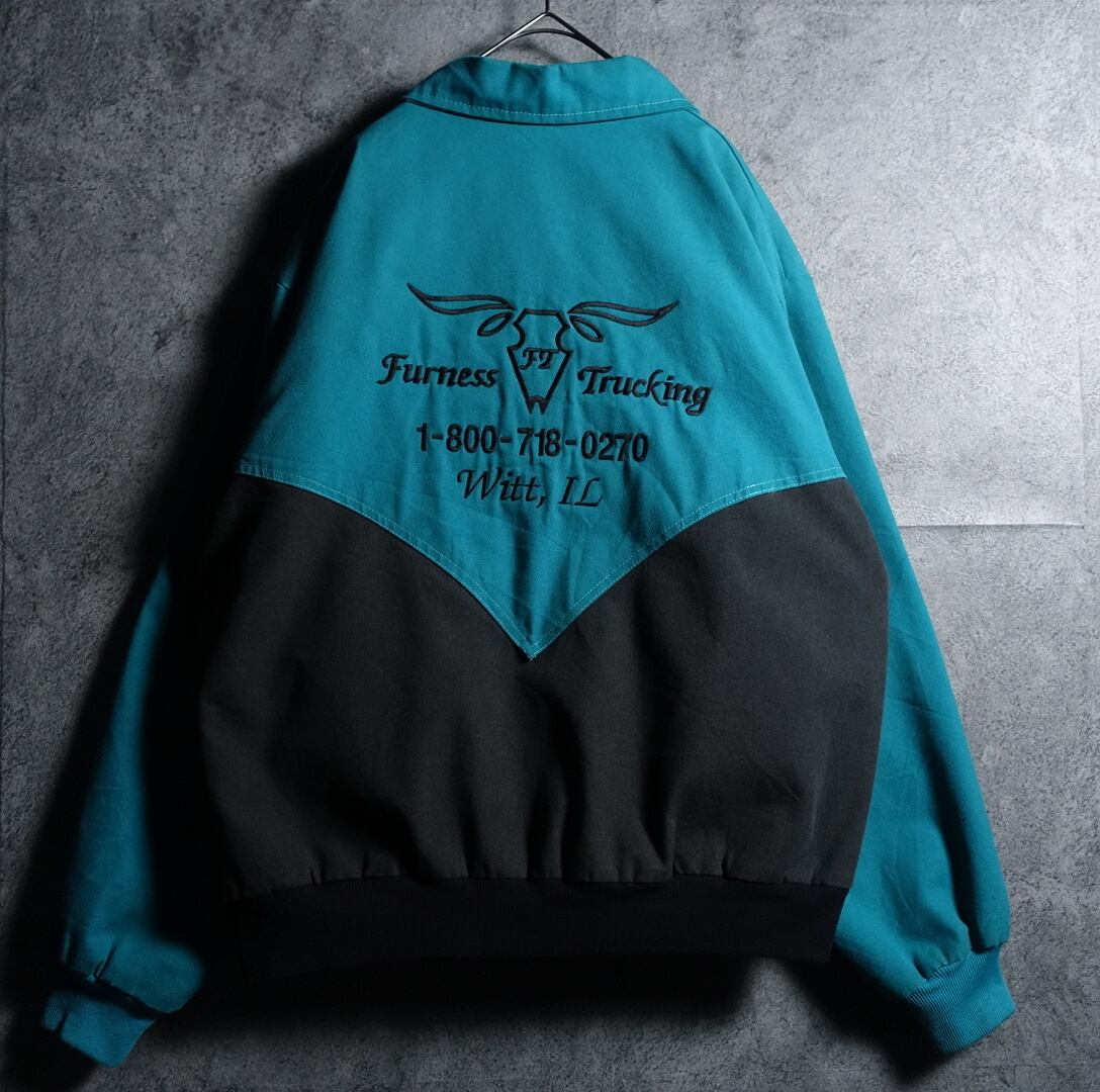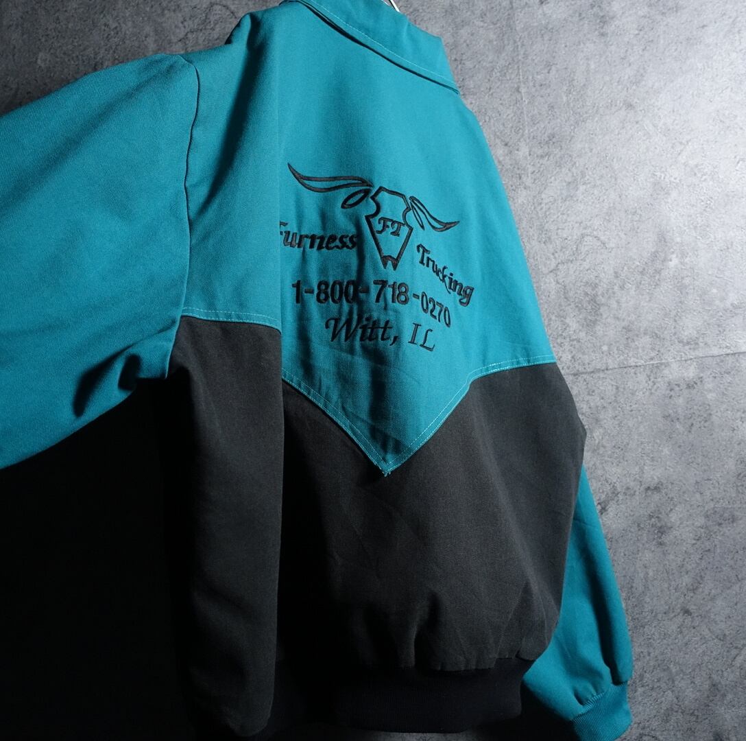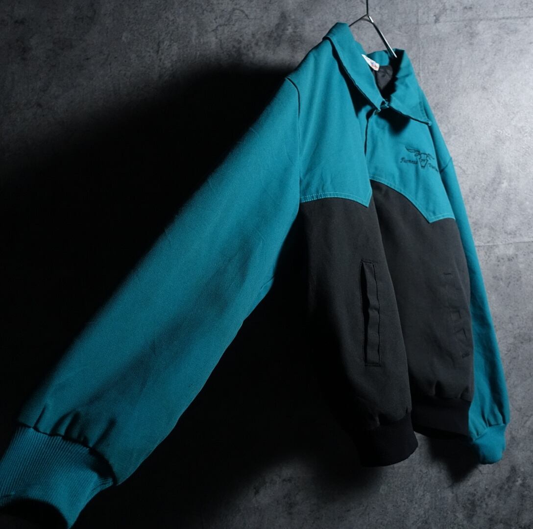 90s “West Ark” Turquoise Blue & Black Logo Embroidery Design Western Jacket