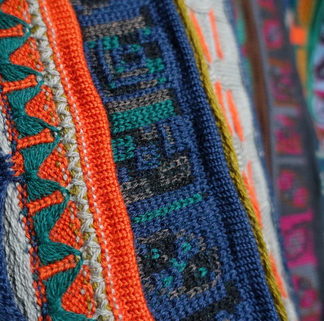 様々な種類の立体的な3Dのうねりのあるニッティングと複数の幾何学模様を全面に散りばめたCOOGIの中でも特に凝ったスペシャルなデザイン。