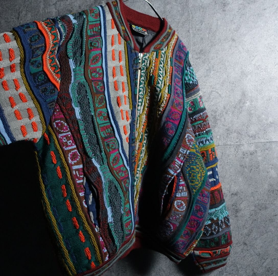 90s “COOGI” Multicolor 3D Pattern Design Knit Zip Blouson