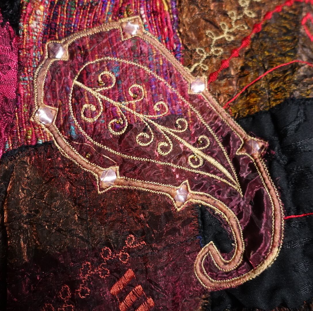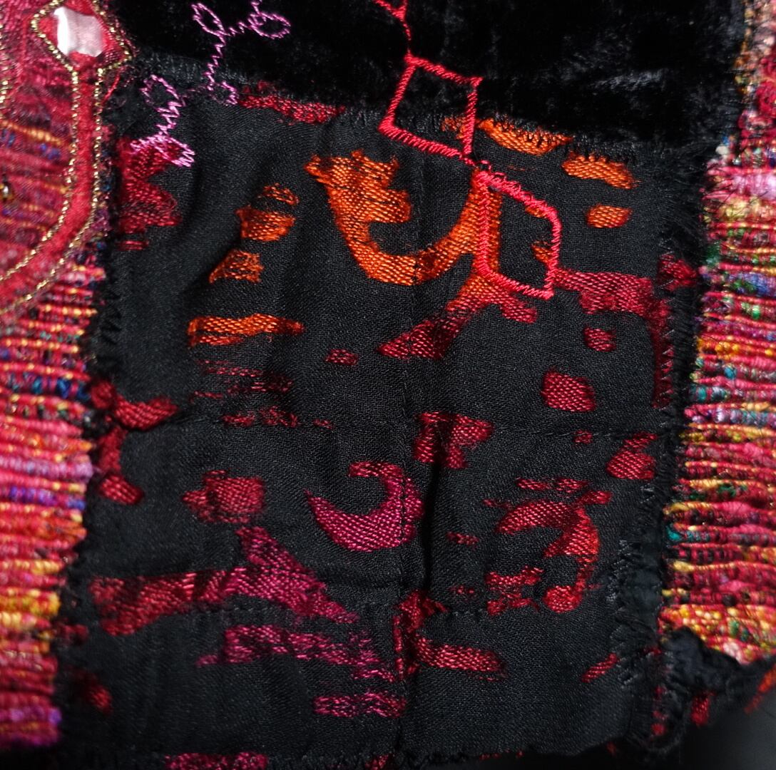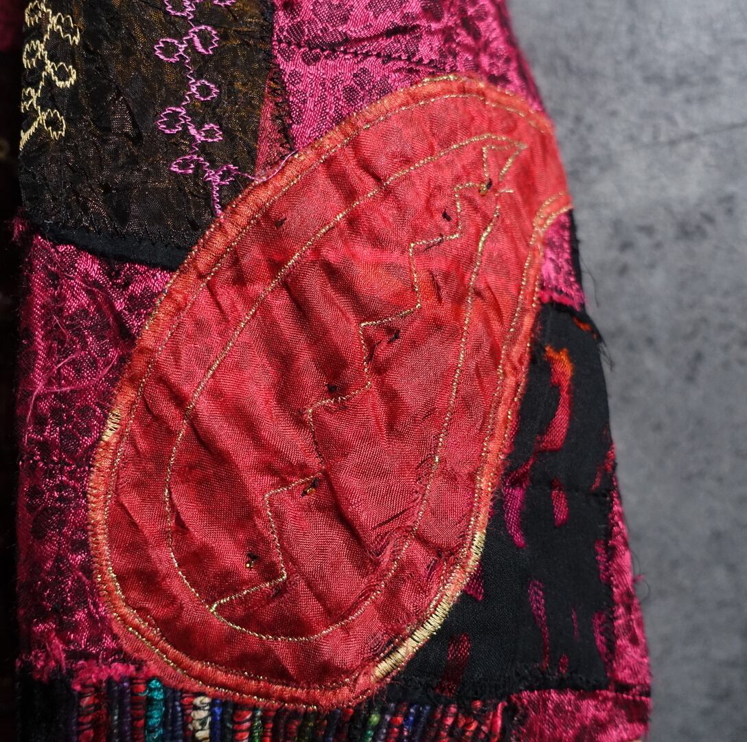 “CHICO’S” Velor x Jaguar x Sequin Paisley Motif Patchwork Short Jacket